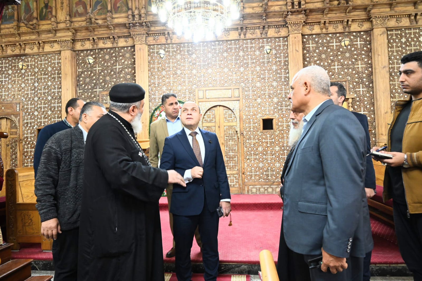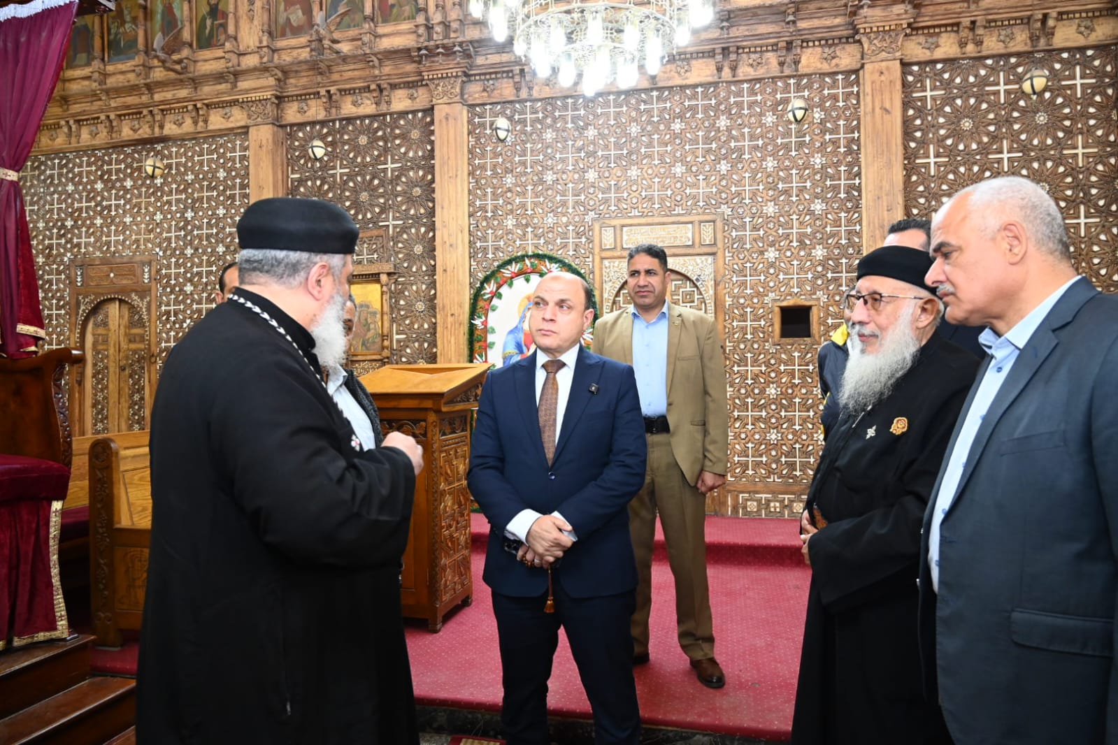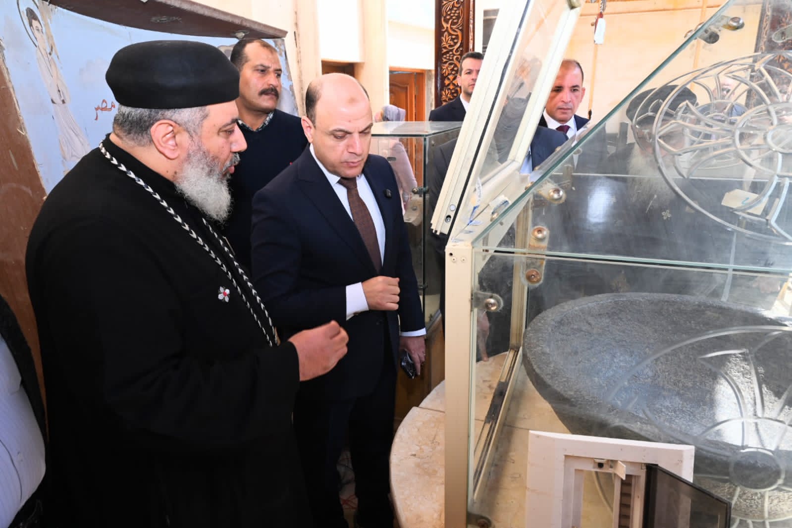 كما تفقد اللواء دكتور علاء عبد المعطي كنيسة السيدة العذراء والشهيد أبانوب الأثرية، حيث كان في استقباله القمص أبانوب لويس والقمص بيشوي، واستمع إلى شرح وافٍ حول المقتنيات الأثرية داخل الكنيسة، والتي تضم البئر المقدس الذي شربت منه العائلة المقدسة، والماجور الحجري الذي استخدمته السيدة العذراء، إلى جانب عدد من الأيقونات والمقتنيات ذات القيمة التاريخية والدينية الكبيرة.