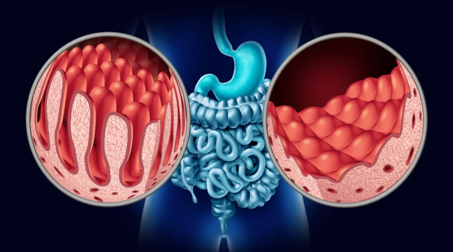 ويؤدي تناول الجلوتين لدى مرضى السيلياك إلى تلف بطانة الأمعاء الدقيقة، مما يسبب ضعف امتصاص الفيتامينات والمعادن.