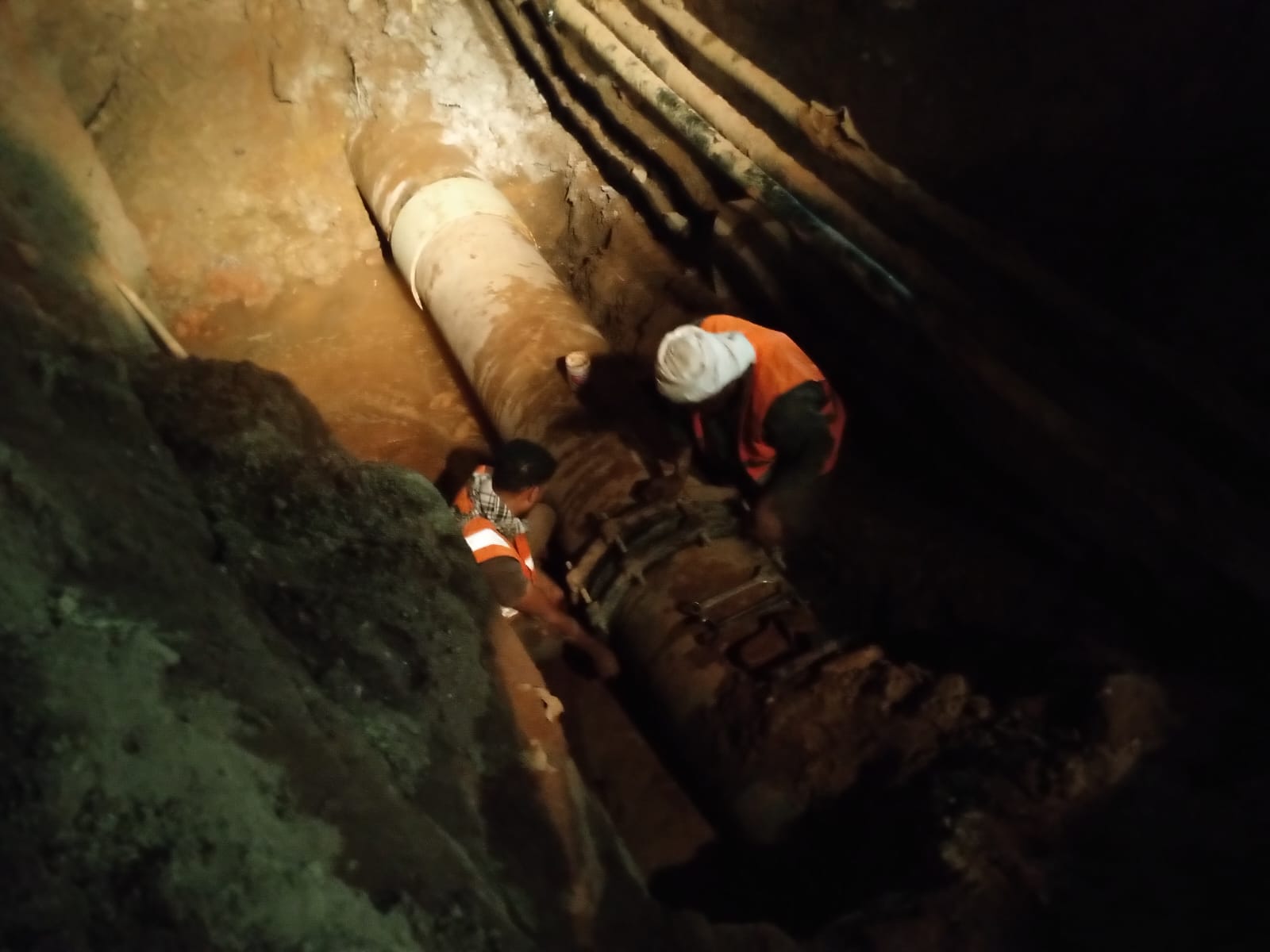 فى تحرك ميدانى ، حرص المهندس عمرو لاشين محافظ أسوان على التواجد وسط فرق الصيانة الفنية بشركة مياه الشرب والصرف الصحى أثناء قيامهم بنهو أعمال الإصلاح للكسر الذى حدث فى خط الطرد الرئيسى قطر 630 مللى من نوعية الـ GRB والممتد من محطة الصرف الصحى رقم ( 11 ) بالكرور أمام منطقة فيله .