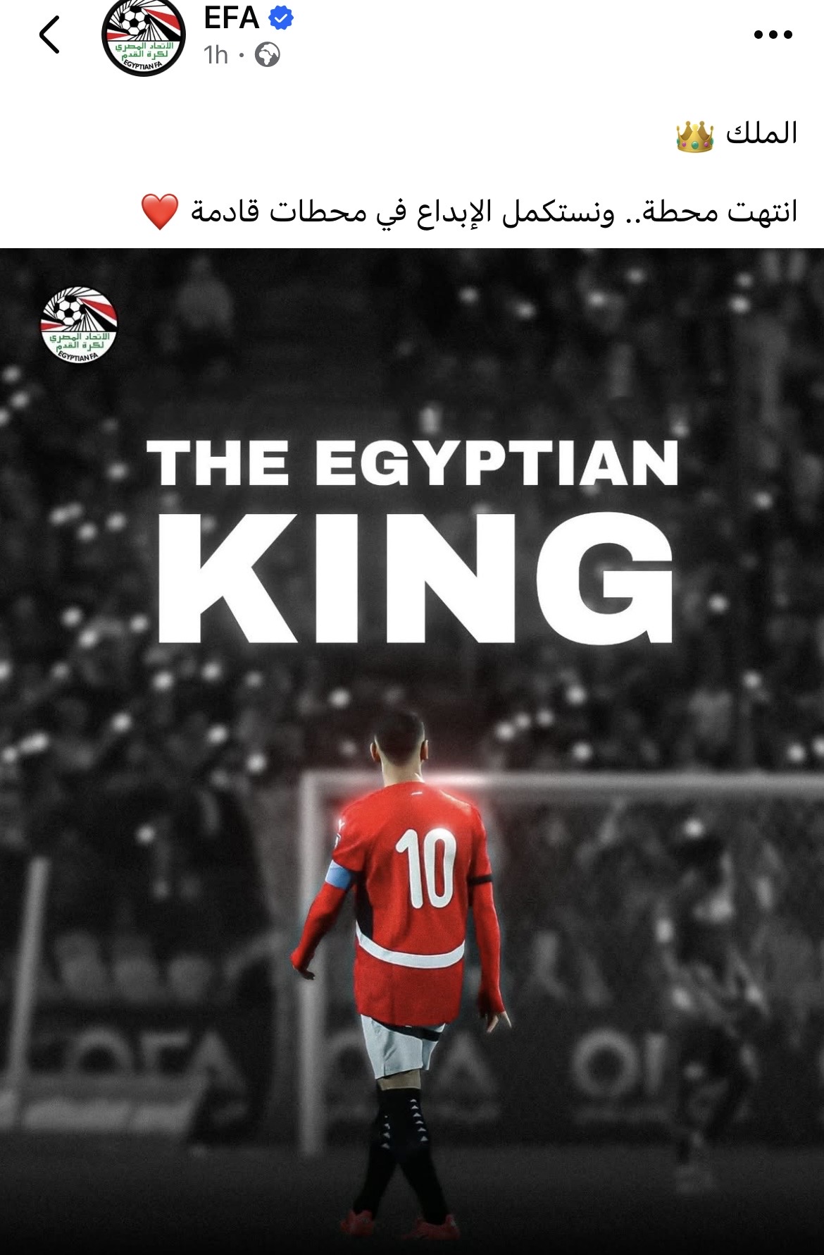 وعلقت الصفحة الرسمية لاتحاد الكرة المصري عبر موقع التواصل الاجتماعي فيسبوك: “الملك انتهت محطة ونستكمل الإبداع في محطات قادمة”.