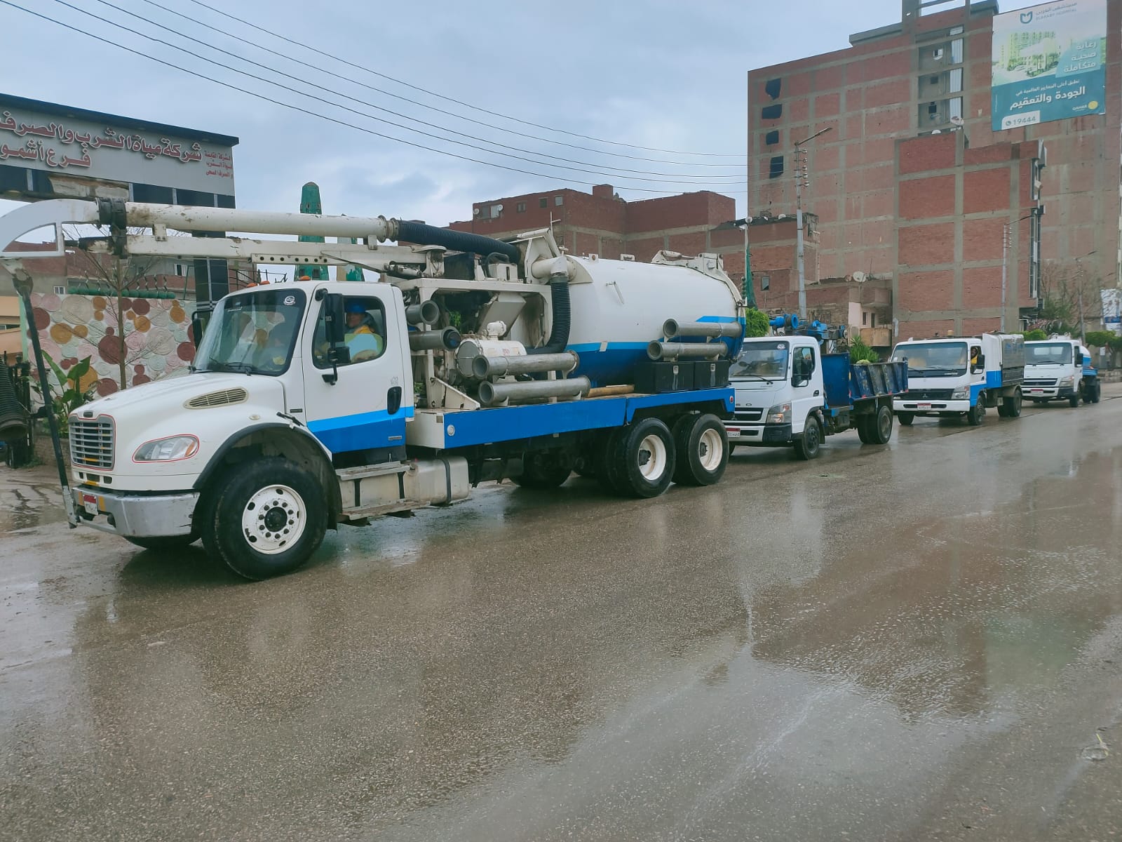 كما تمركزت عربات الشفط بالأماكن المحتملة لتجمعات مياه الأمطار بمختلف مناطق المحافظة للتعامل الفورى والسريع حال سقوط الأمطار.