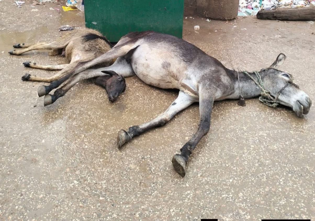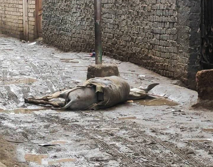 كما نفق حمار إثر صعق كهربائي من عامود إنارة بسقارة.