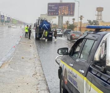 كما قامت قوات الحماية المدنية بإتخاذ الإجراءات اللازمة لإزالة تجمعات المياه .