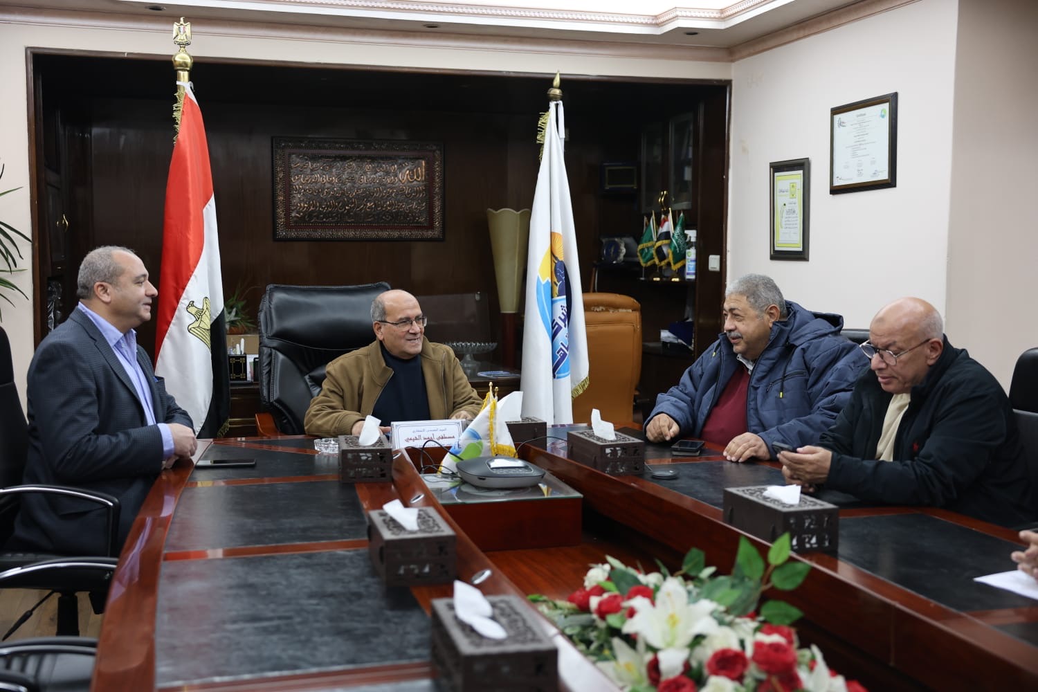 وفي إطار المتابعة المستمرة للموقف الميداني، عقد رئيس الشركة القابضة اجتماعًا تنسيقيًا مع المهندس مصطفى الشيمي رئيس شركة مياه الشرب بالقاهرة، والمهندس عادل حسن رئيس شركة الصرف الصحي بالقاهرة الكبرى، بحضور المهندس إسماعيل عبد ربه النائب الفني لرئيس شركة مياه الشرب بالقاهرة، وعدد من القيادات التنفيذية، لمتابعة الموقف أولًا بأول وتعزيز التنسيق بين مختلف الجهات المعنية.