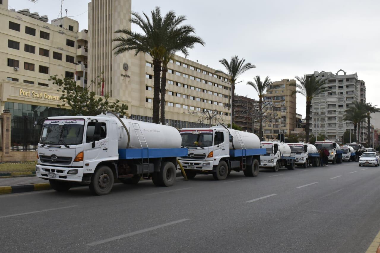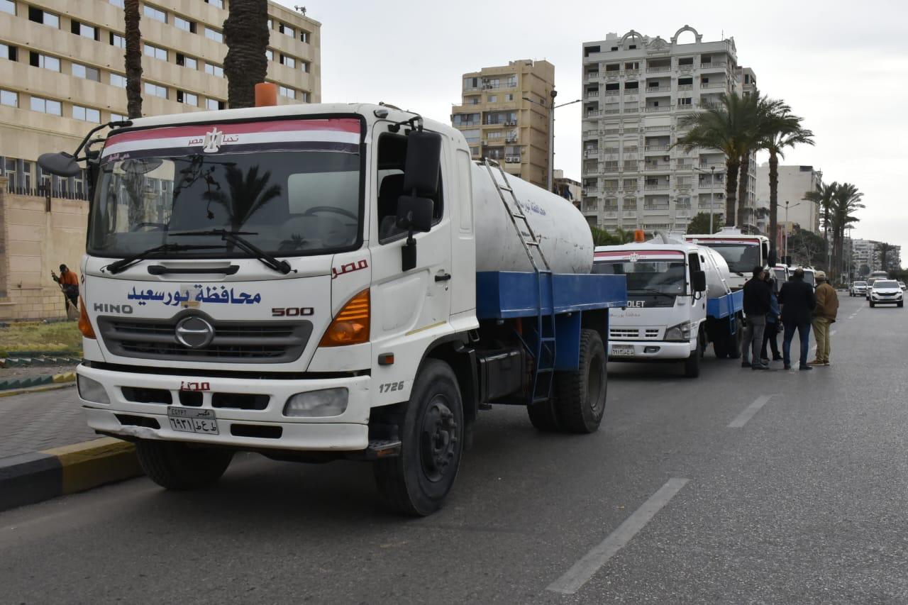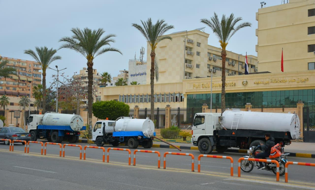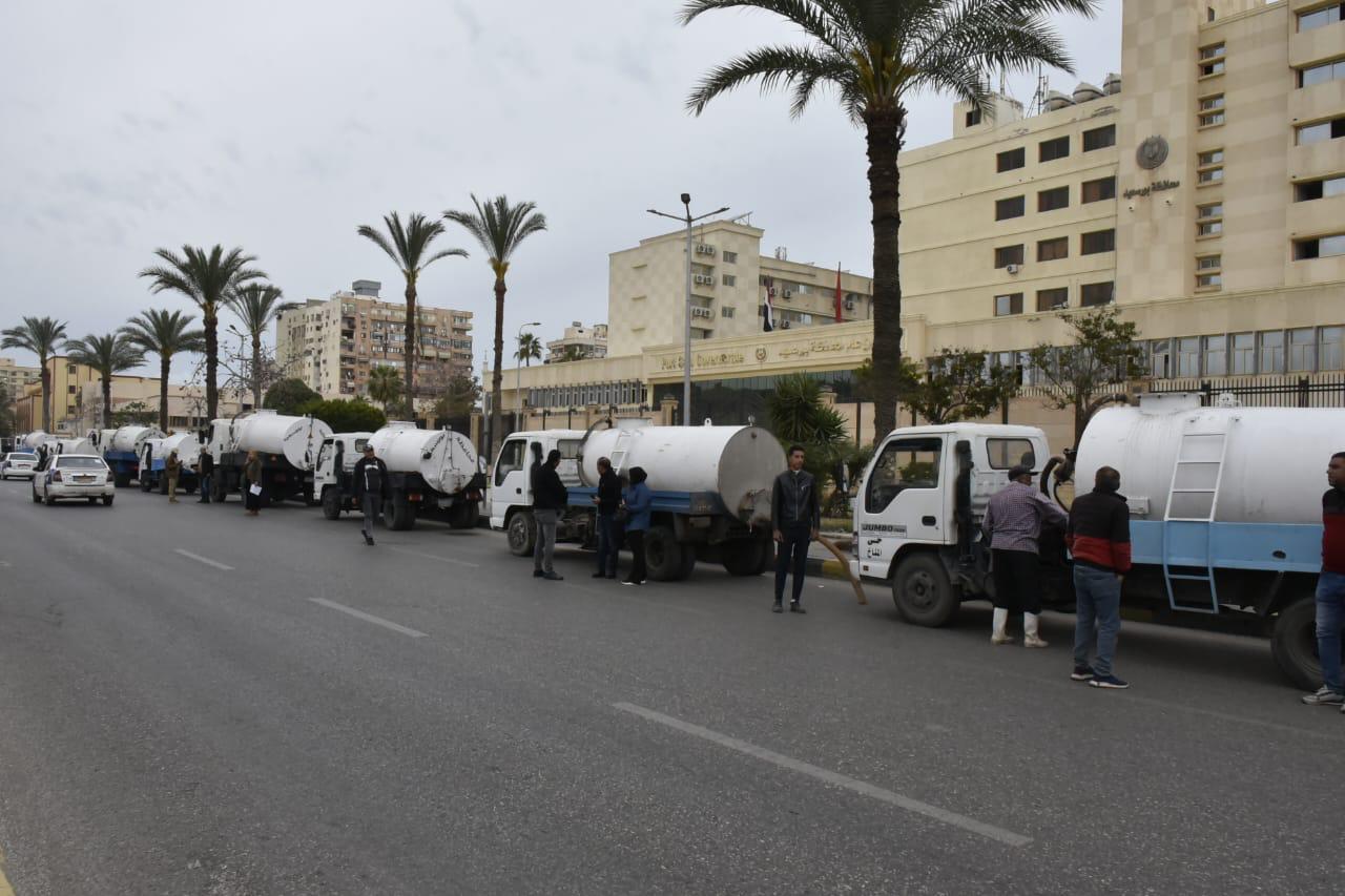 جاهزية كاملة للمعدات والدفع بعربات كسح المياه بكافة الأحياء وبورفؤاد