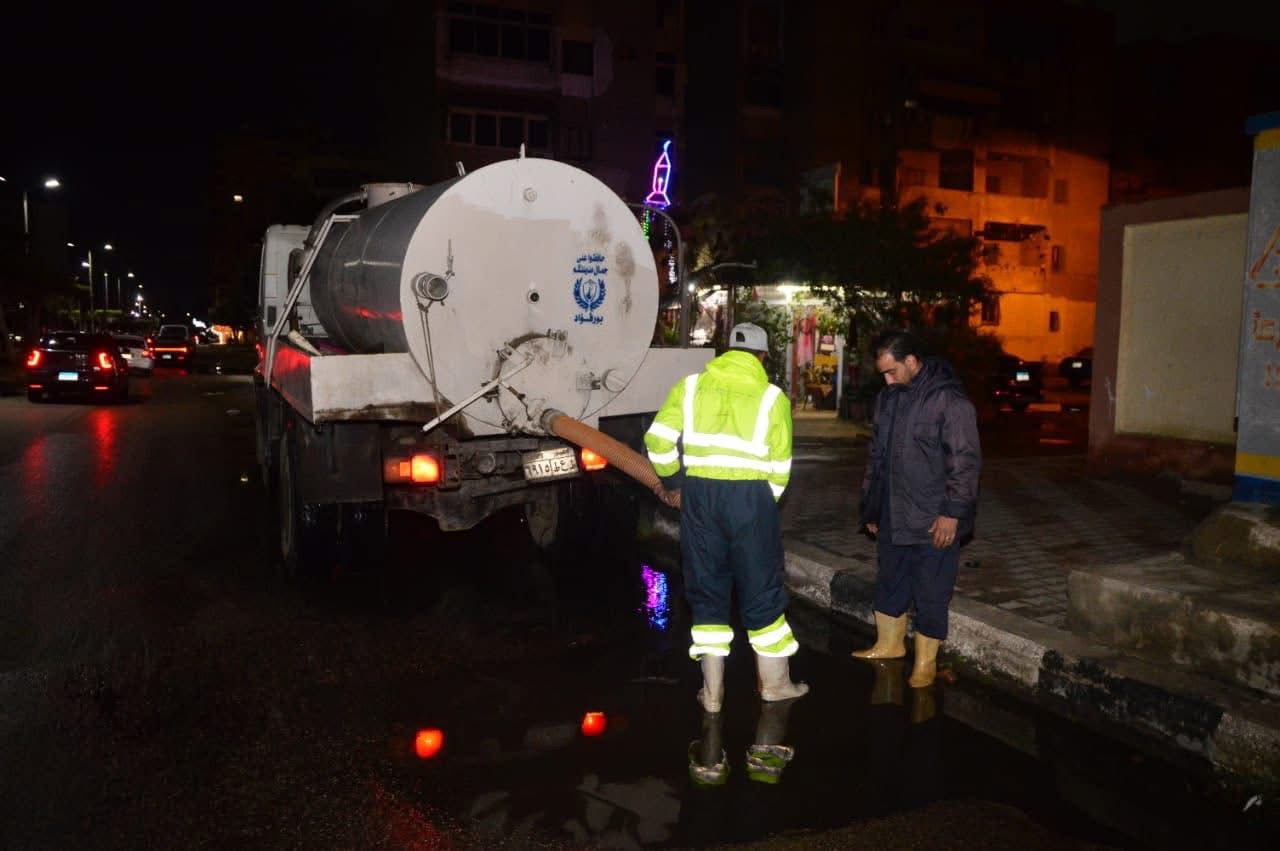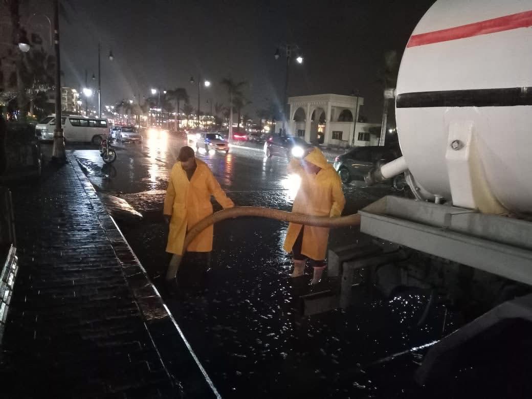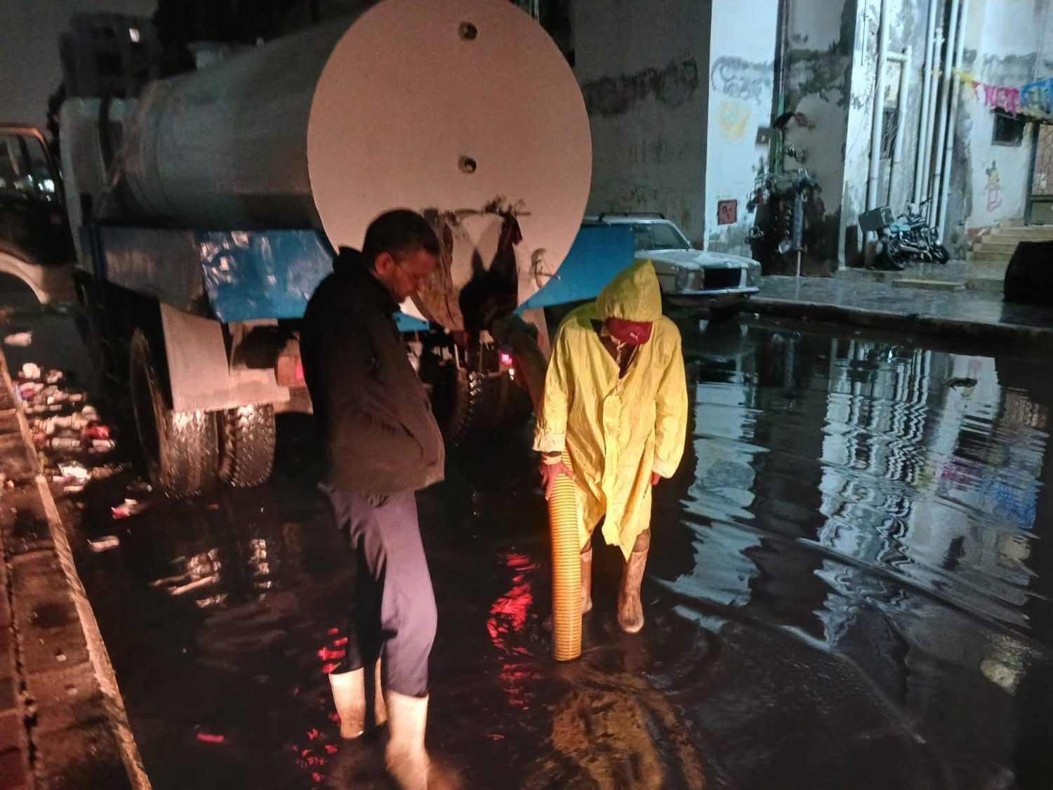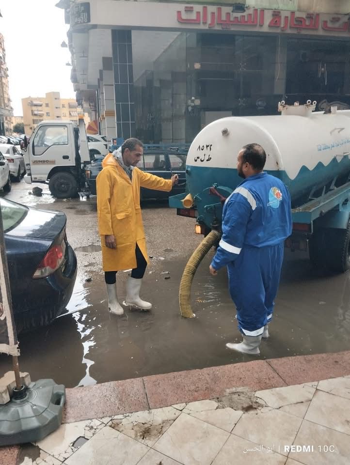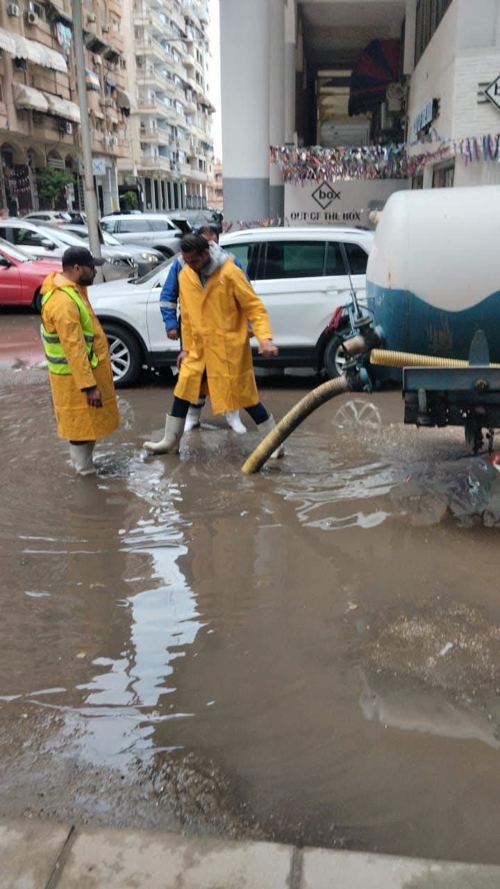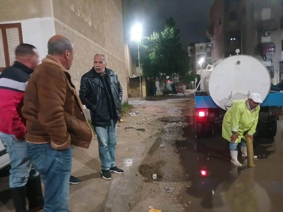 بمتابعة ميدانية من المهندسة شيماء جودة رئيس حي العرب، انتشر فريق العمل الميداني وإدارة البيئة بالتنسيق مع شركة المياه لسحب تجمعات الأمطار أولاً بأول.