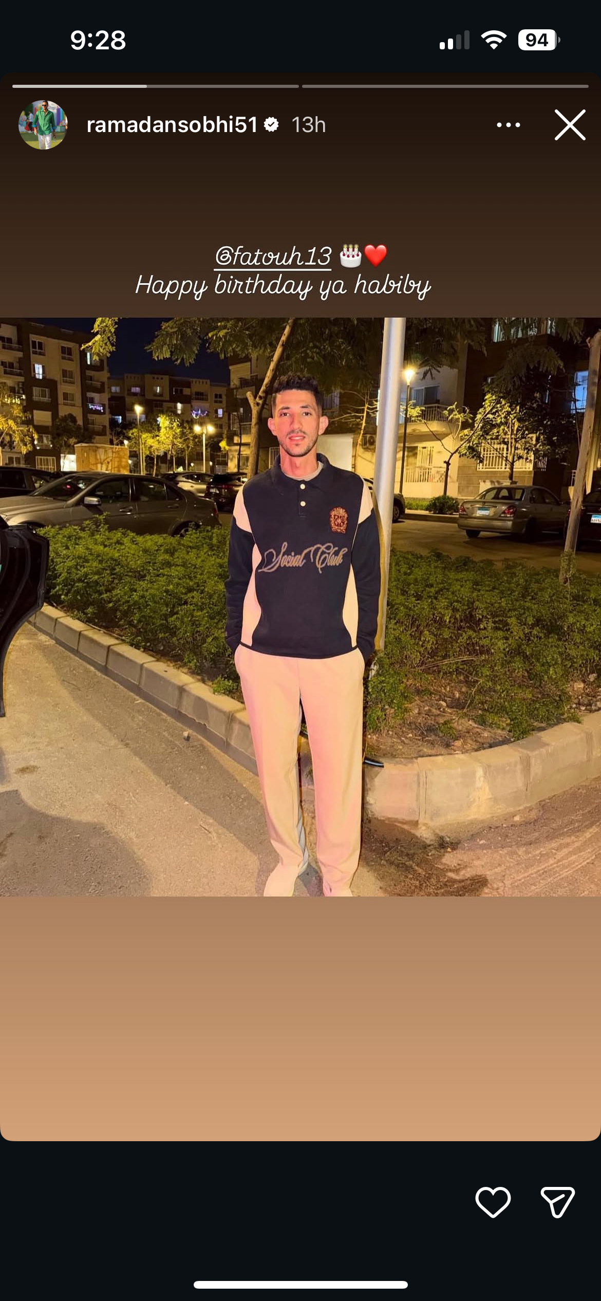 وشارك رمضان صبحي، عبر ستوري حسابه على “إنستجرام”، التهنئة وكتب: “عيد ميلاد سعيد حبيبي”.