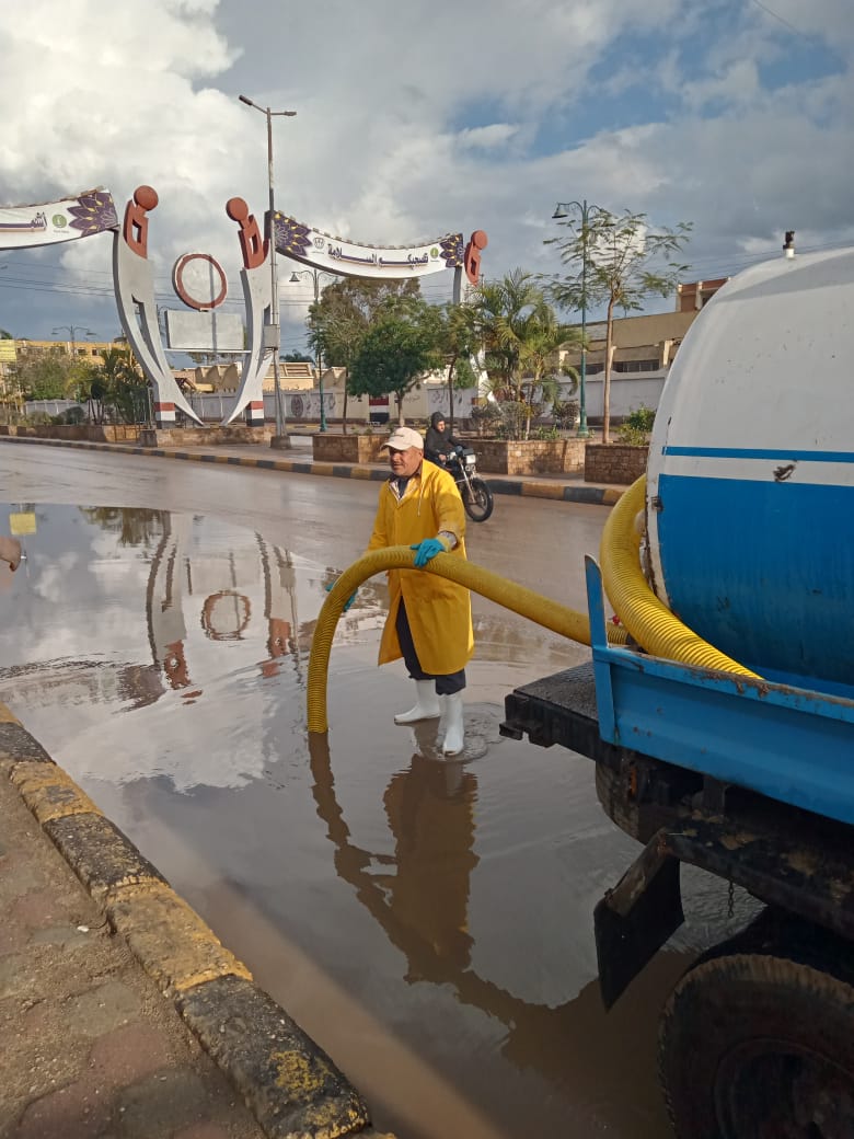 واضاف، أن معدات الشركة تتمركز بمختلف شوارع المحافظة على مدار اليوم لكسح مياه الأمطار وتسليك بالوعات الصرف للتأكد من تصريفها للمياه أولاً بأول لمنع تراكمها بالشوارع وفتح الطريق أمام حركة السيارات وعبور المواطنين.