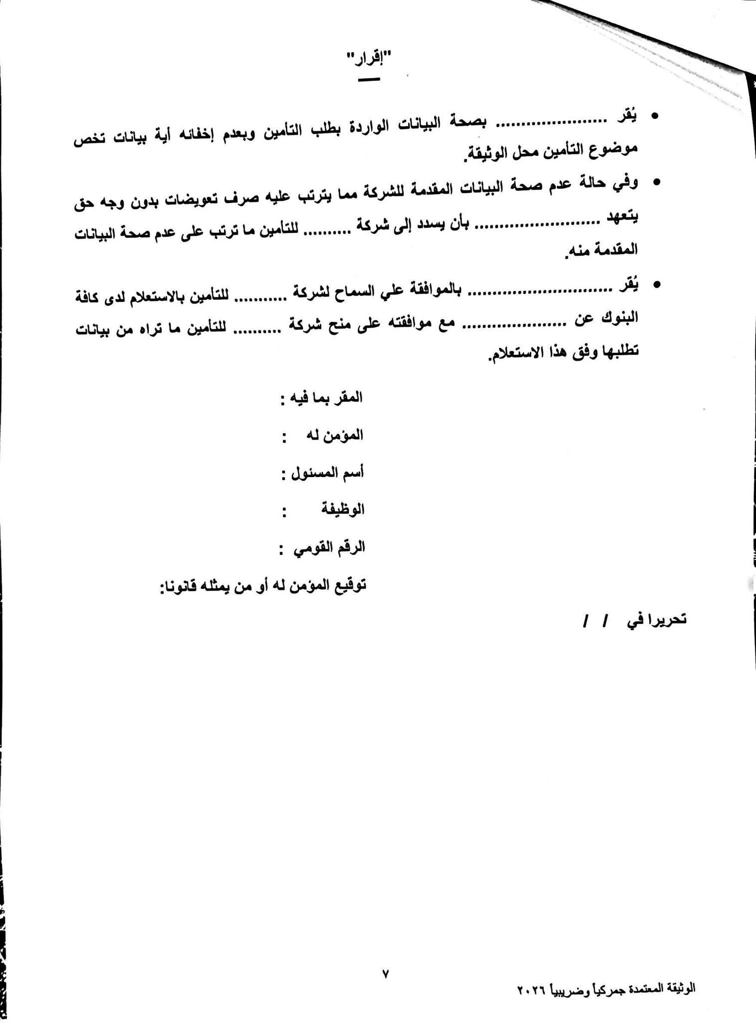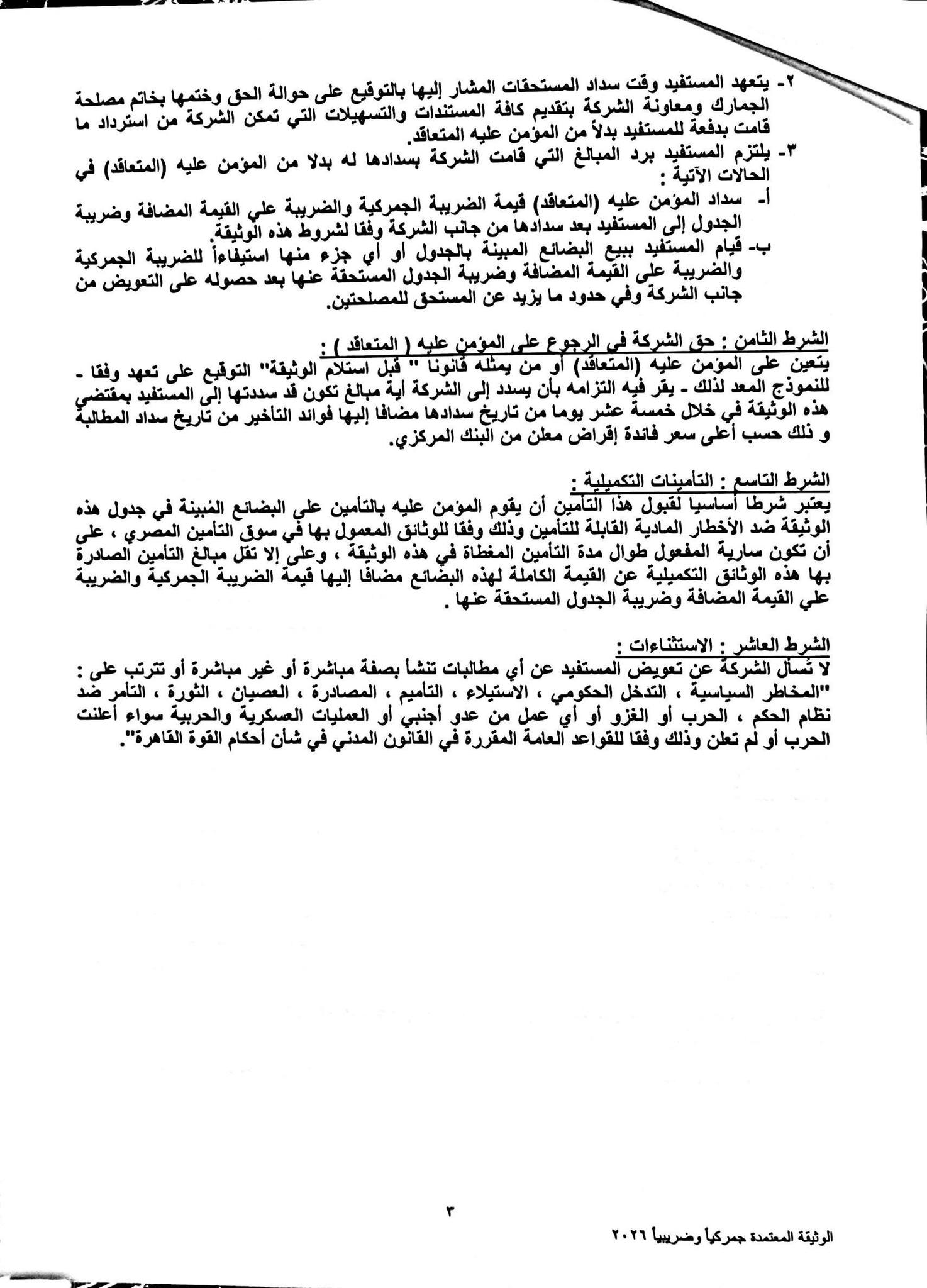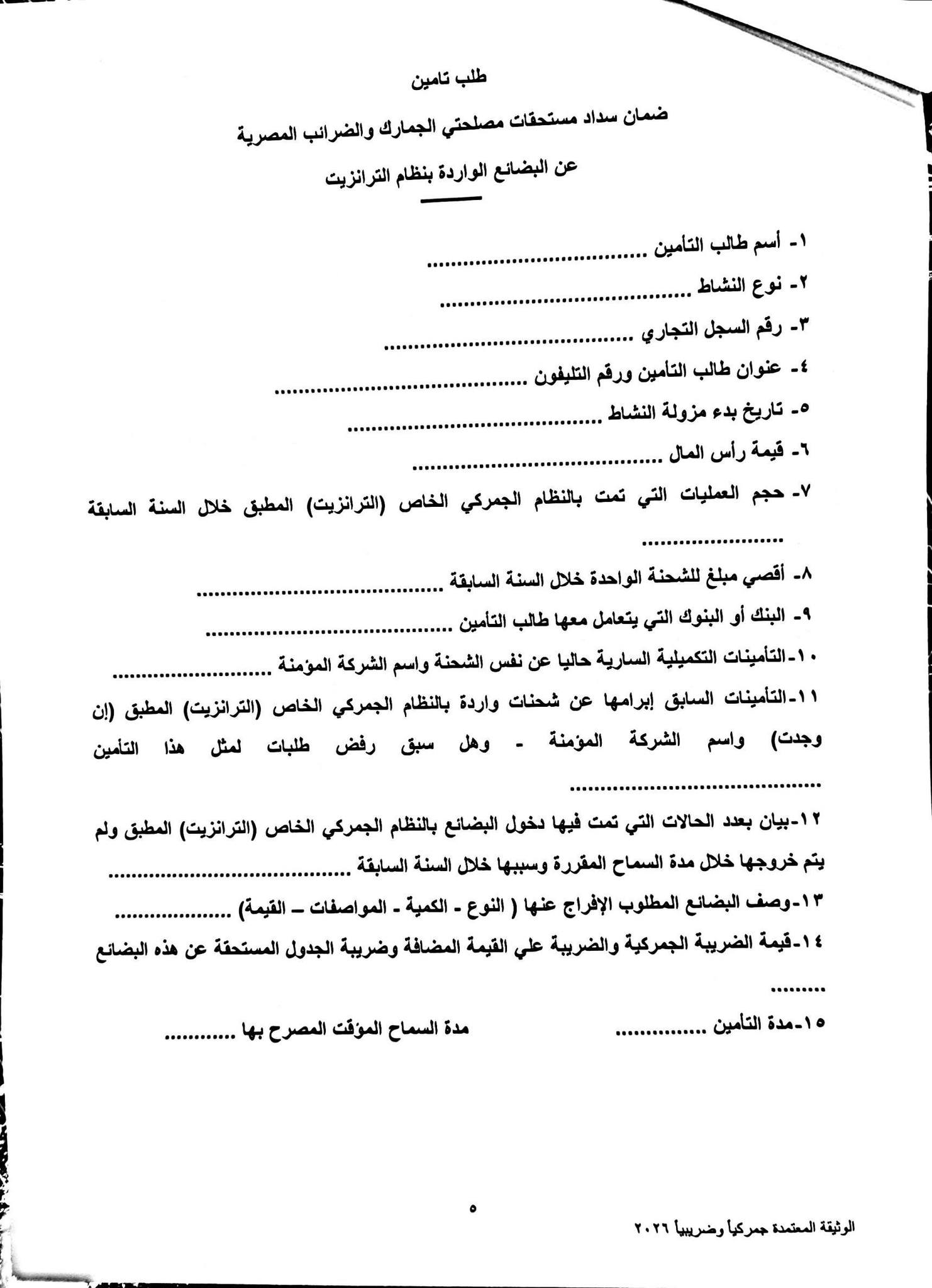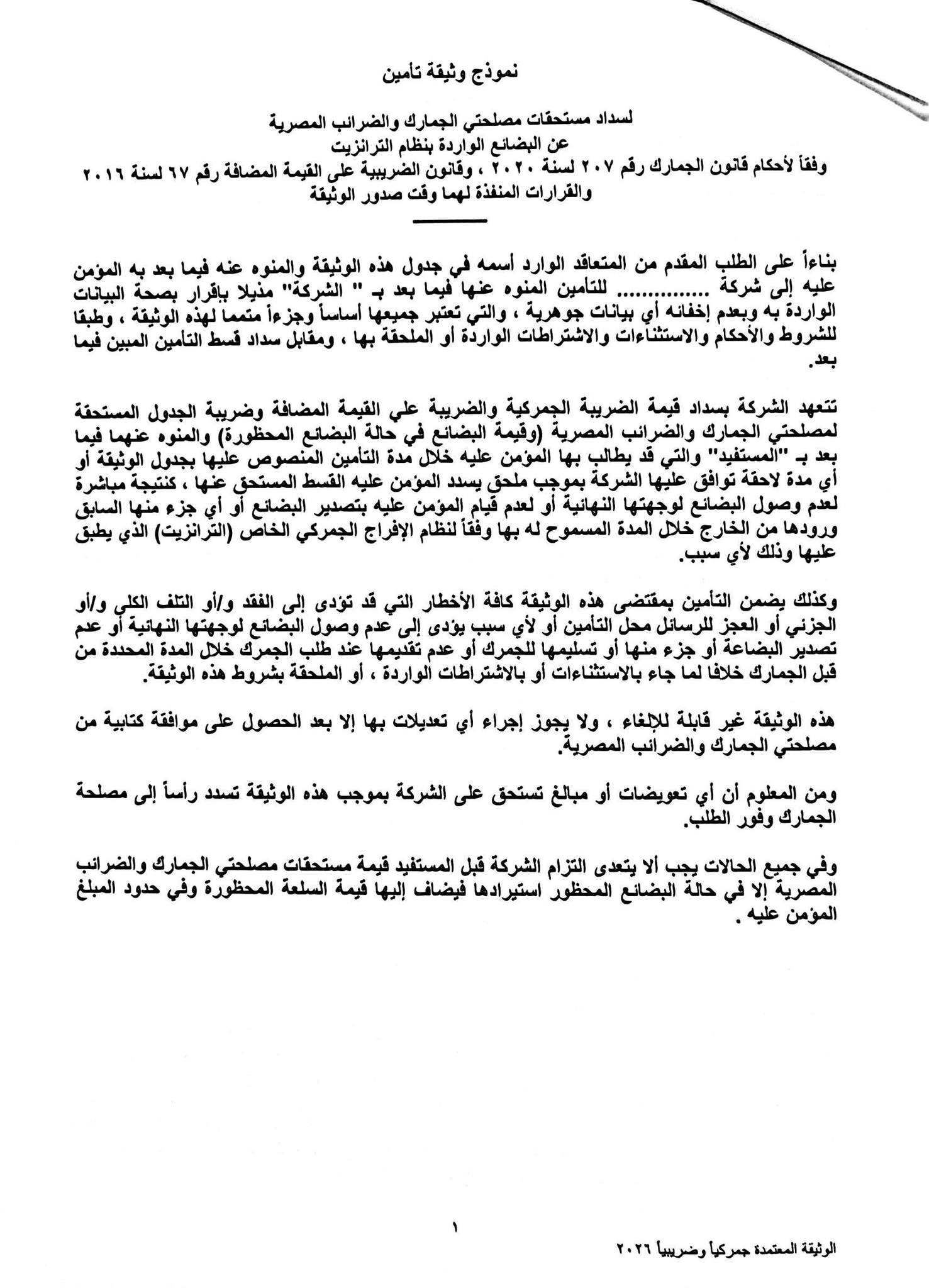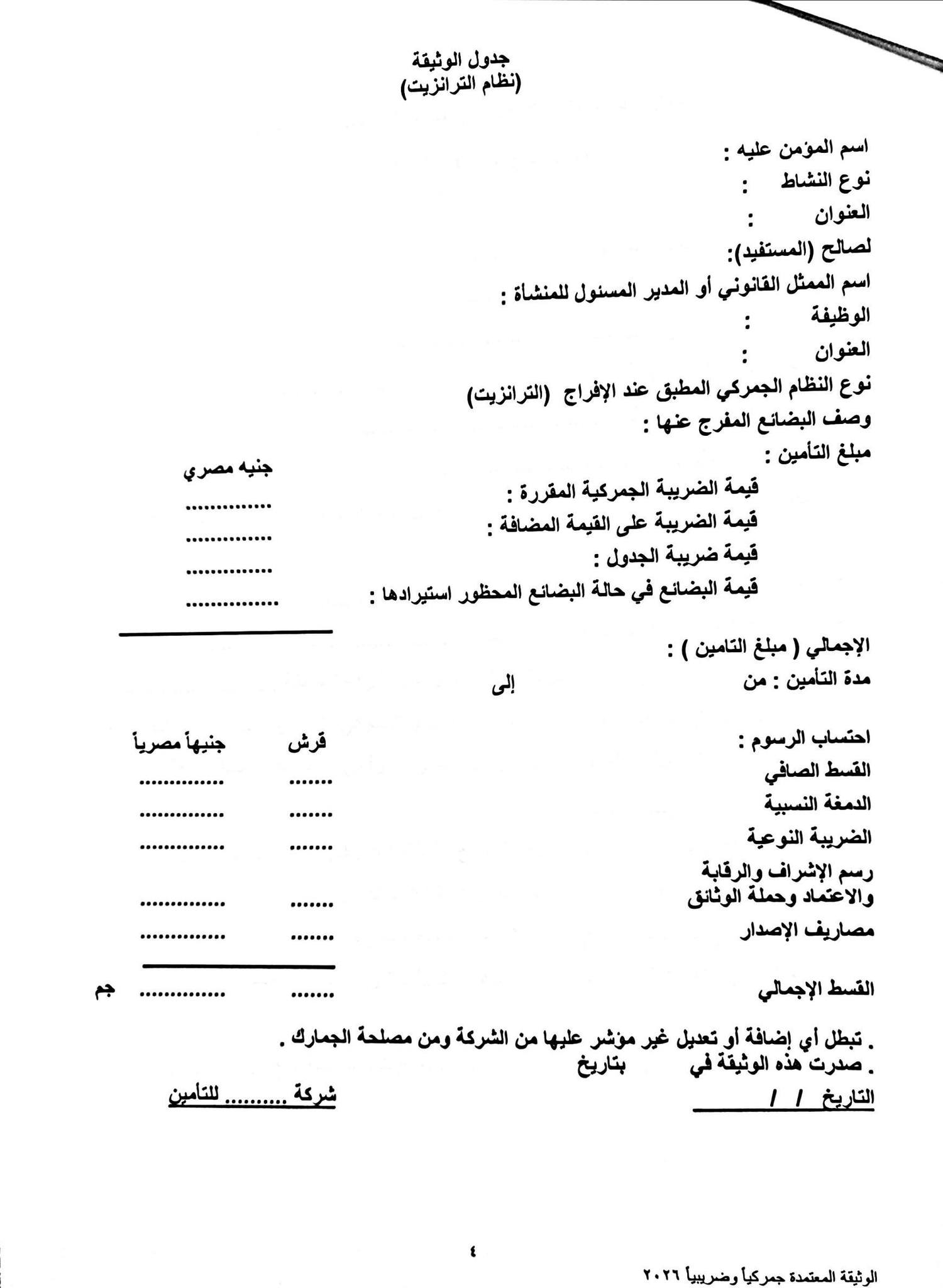 شددت التعليمات على ضرورة أن تراعي كافة المواقع قبول وثائق التأمين الورقية وفقًا للنماذج المرفقة بإعتبارها ضمانات للرسائل العابرة بنظام الترانزيت.