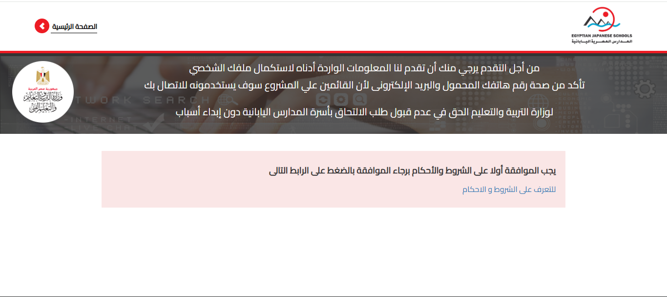 ـ تنتقل إلى الصفحة الرئيسية الخاصة بالمدارس المصرية اليابانية.