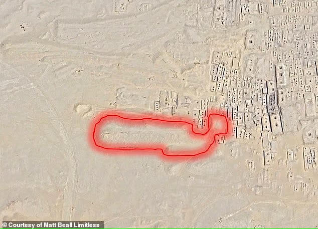 كما أشار الفريق إلى أن الصور الفضائية كشفت عن مرتفع أرضي قد يخفي بُنية أثرية ضخمة، مرجحين أن يكون على عمق كبير أسفل السطح، مع وجود ممرات رأسية وأفقية محتملة.