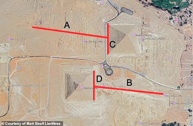 ويزعم الباحثون أن التحليلات الهندسية للمنطقة، بما في ذلك خطوط محاذاة بين أهرامات الجيزة وتمثال أبو الهول الكبير، قد تشير إلى موقع “منعكس” على الجانب الآخر من الهضبة، يُعتقد أنه قد يحتوي على تمثال مماثل مدفون تحت تلة من الرمال المتصلبة.