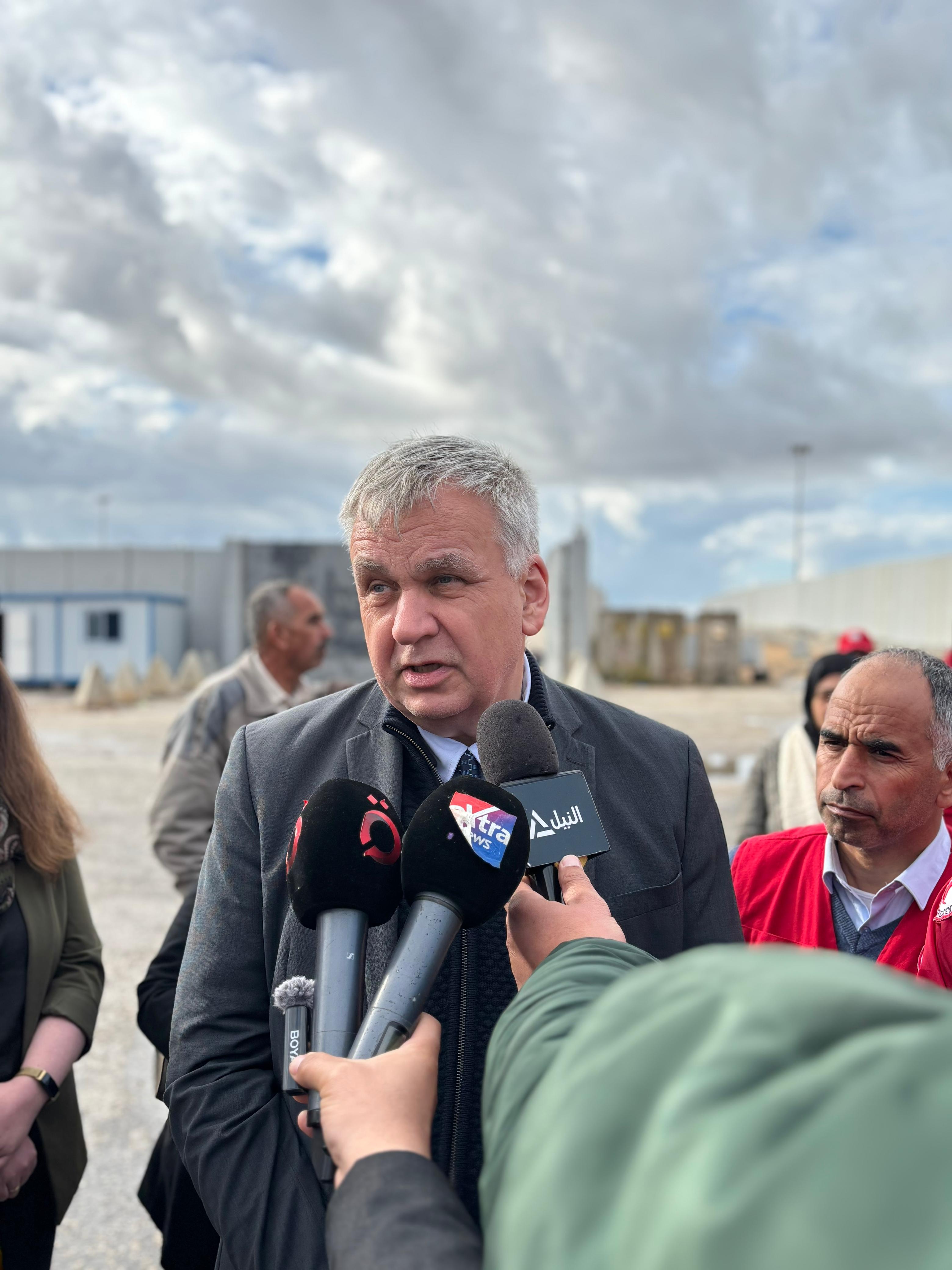 وقال السفير شولتس عند معبر رفح: "رسالتي الأهم هي: لا يجوز لنا أن ننسى غزة وتنفيذ خطة السلام. هناك حالياً العديد من الأولويات الأخرى لدرجة أننا نشعر أحياناً أن غزة لم تعد في الصدارة كما كانت قبل بضعة أسابيع.