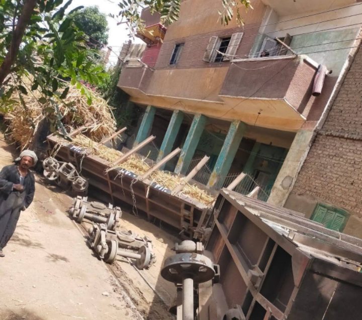 شهدت قرية القنان التابعة لمدينة السباعية بمركز إدفو شمال أسوان خروج قطار الديكوفيل للقصب عن مساره وانقلاب عربه دون وجود إصابات أو خسائر فى الأرواح.