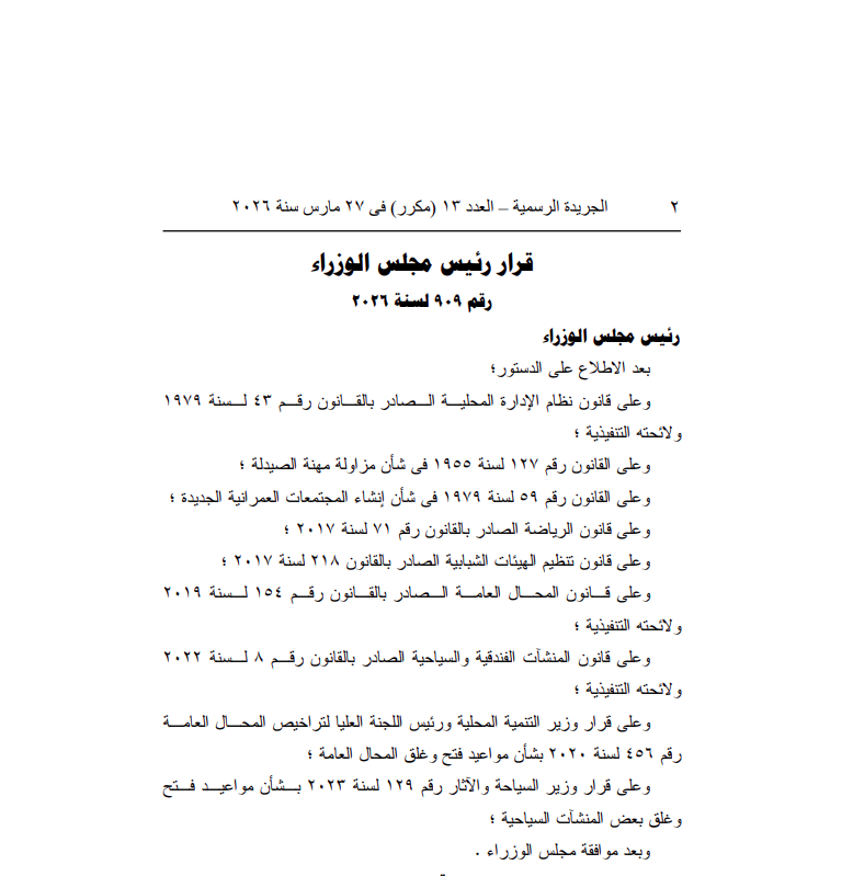 ويبدأ تطبيق القرار اعتبارا من يوم السبت الموافق 28 مارس 2026 ولمدة شهر.