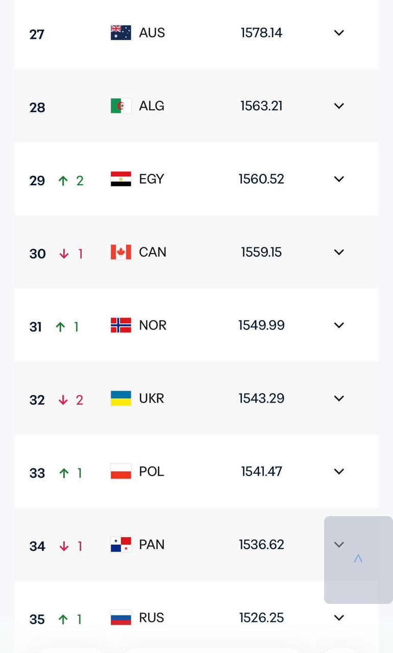 ونتيجة لذلك، تقدم المنتخب المصري في الترتيب ليصل إلى المركز 29 عالميًا، في خطوة تعكس تحسن نتائجه في الفترة الأخيرة.