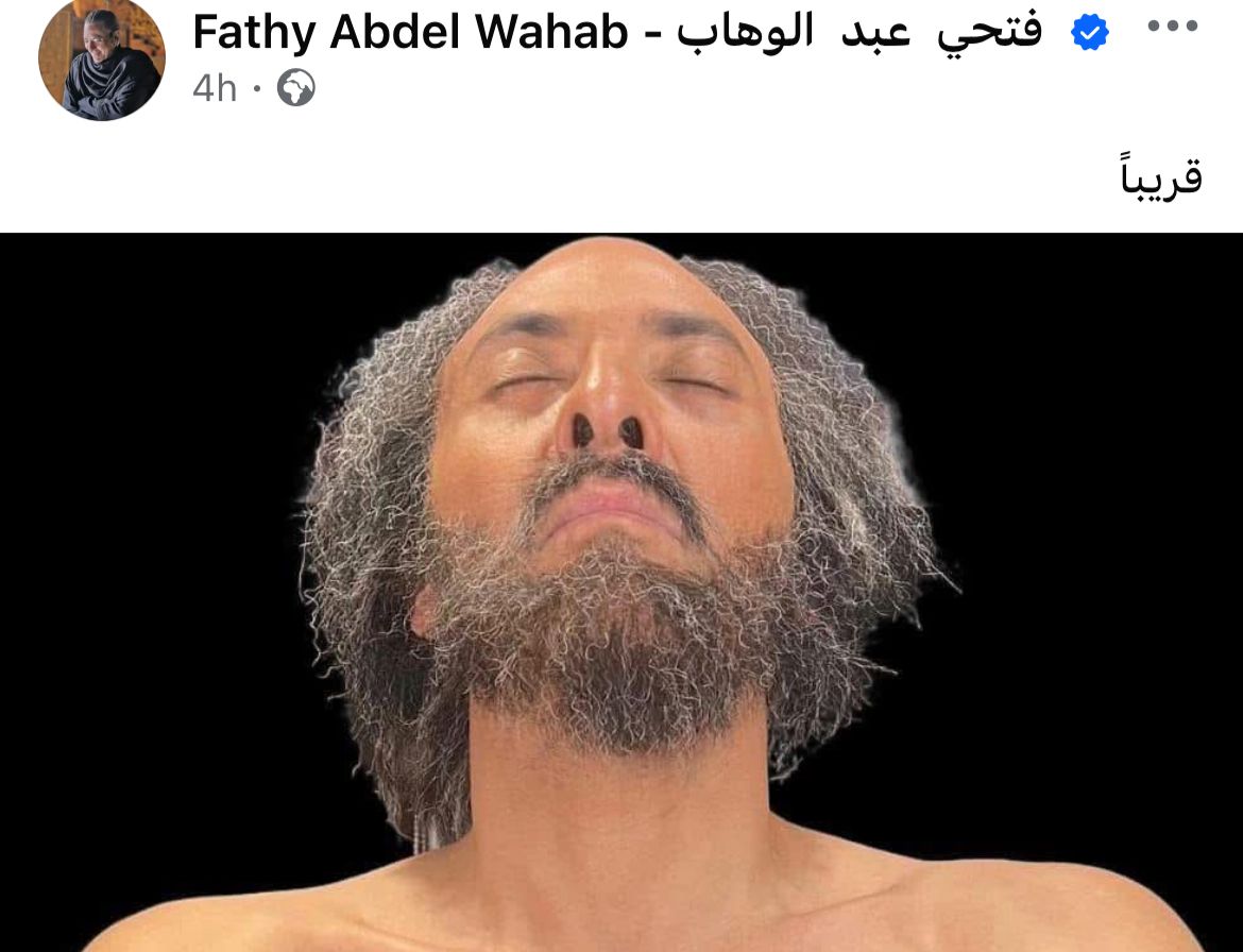 وشارك فتحي عبد الوهاب صورة من كواليس العمل بلوك غريب وشعر أبيض مجعد، وعلق: “قريبا”.