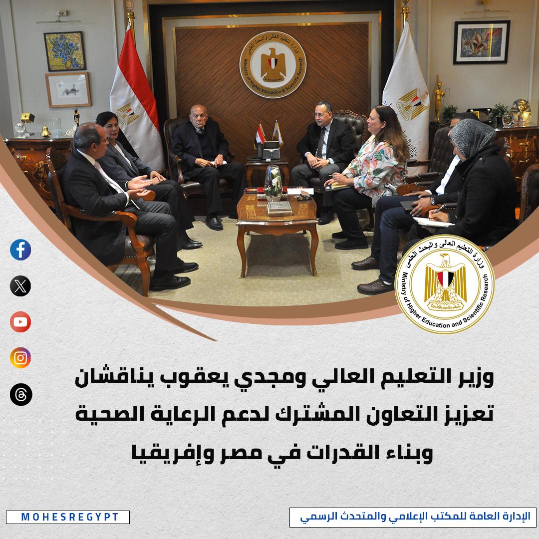 عقد الدكتور خالد عبدالغفار وزير الصحة والسكان والدكتور عبد العزيز قنصوه وزير التعليم العالي والبحث العلمي اجتماعًا لمناقشة استراتيجية تدريب أطقم المهن الطبية، ويأتي هذا الاجتماع في إطار توجيهات القيادة السياسية بالارتقاء بالمنظومة الصحية وتحسين جودة الخدمات المقدمة للمواطنين، وتمثل هذه الاستراتيجية ثمرة للتعاون المشترك والوثيق بين وزارتي الصحة والتعليم العالي، وبدعم ومتابعة حثيثة من مجلس النواب، تهدف الاستراتيجية إلى توحيد الجهود الوطنية لرفع كفاءة الكوادر الطبية وتوفير بيئة تدريبية مستدامة تواكب أحدث المعايير الصحية العالمية، وفي كلمته، أكد الدكتور عبدالعزيز قنصوة استمرار جهود الوزارة في الارتقاء بجودة الخدمات الصحية والتعليم الطبي، وتطوير منظومة المستشفيات الجامعية؛ بما يسهم في تحسين مستوى الرعاية الصحية المقدمة للمواطنين، إلى جانب دعم مسارات التعليم الطبي والبحث العلمي، مشيرًا إلى أن المستشفيات الجامعية تمثل ذراعًا أساسيًا للدولة في تقديم الخدمات الصحية.