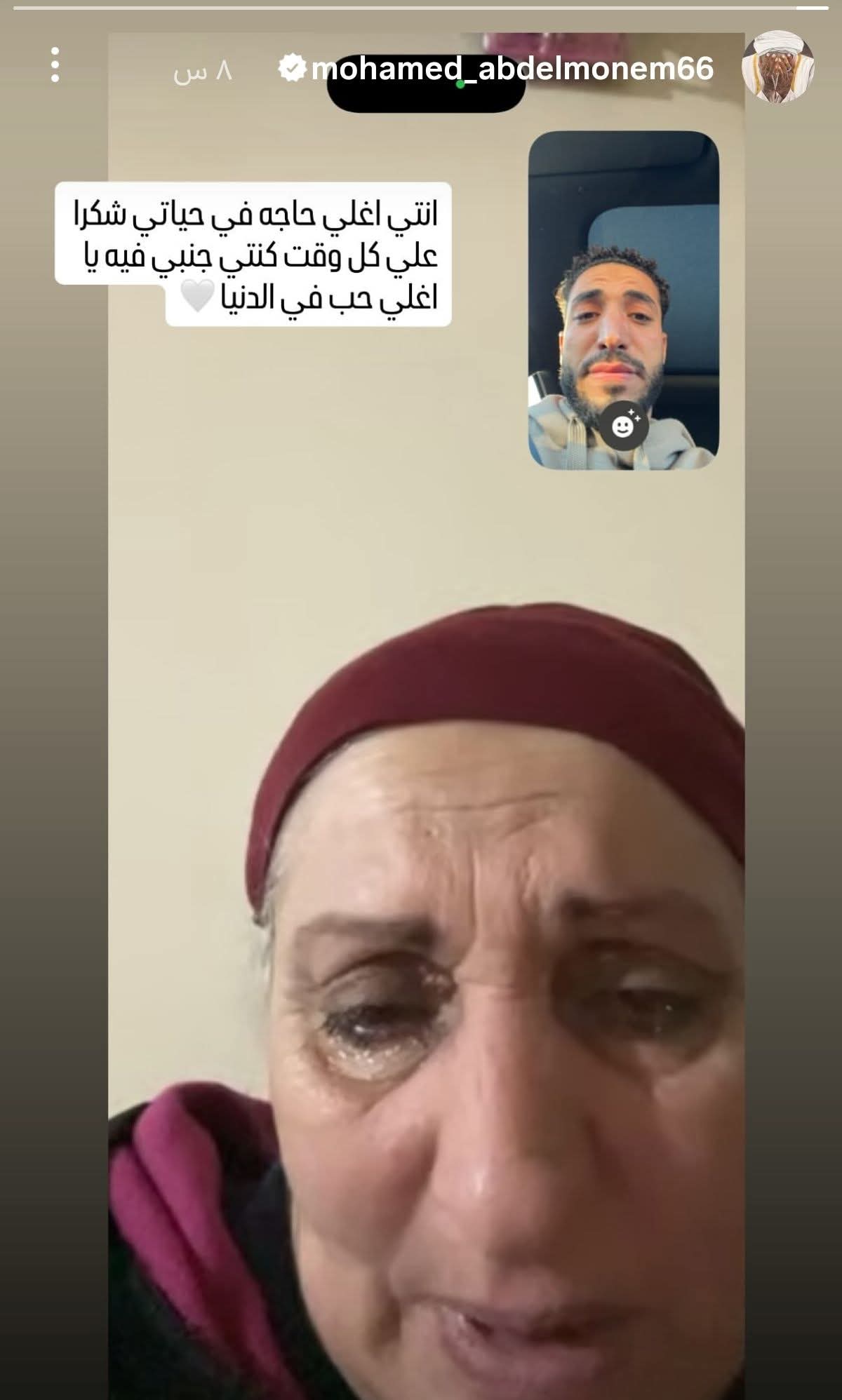 شارك محمد عبد المنعم نجم منتخب مصر جمهورة كواليس مكالمه فيديو مع والدتة وذلك عبر حسابه الشخصي بموقع التواصل الإجتماعي إنستجرام.