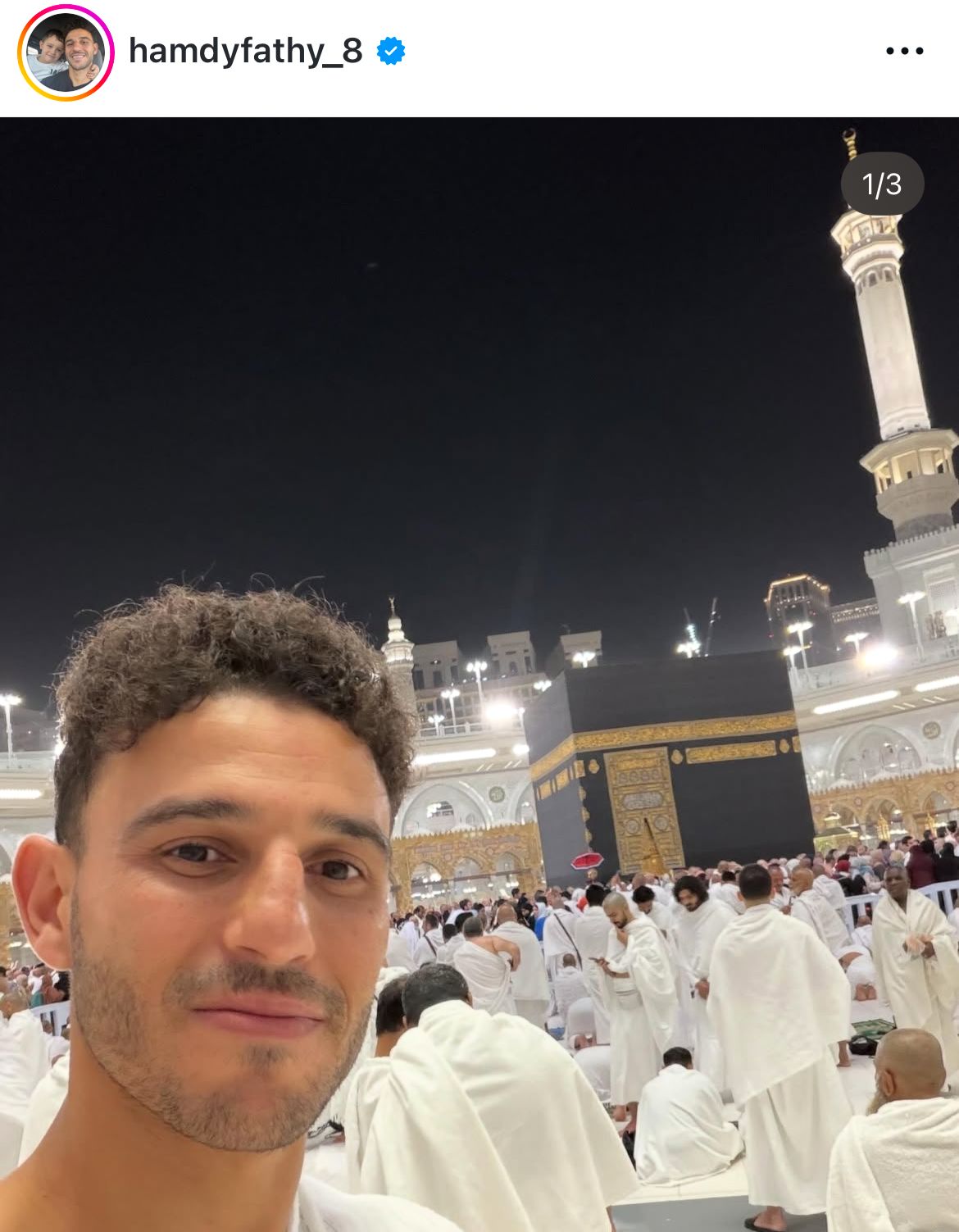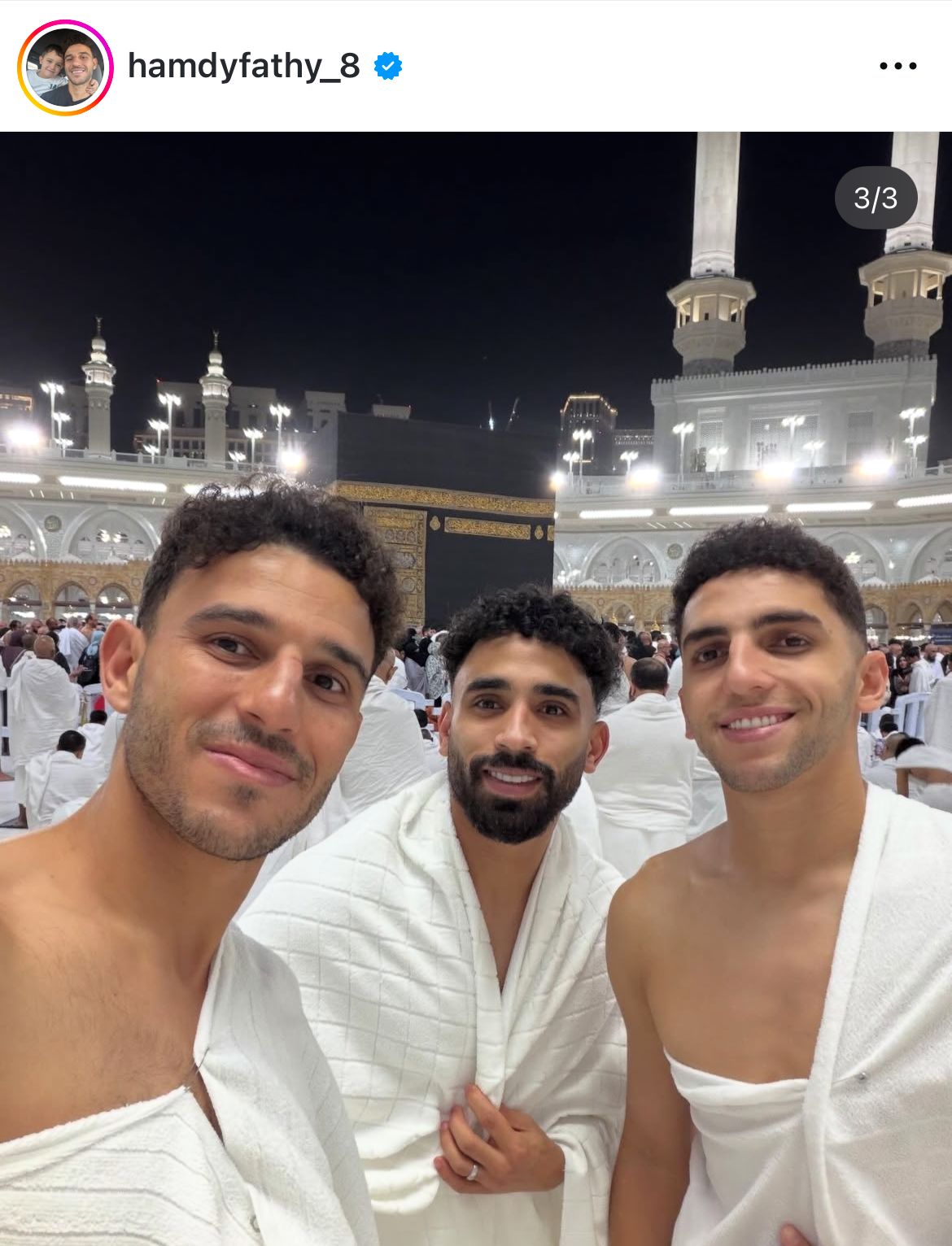 وظهر حمدي فتحي رفقة لاعبي المنتخب الوطني أحمد نبيل كوكا ومروان عطية من الحرم المكي اثناء أداء العمرة.