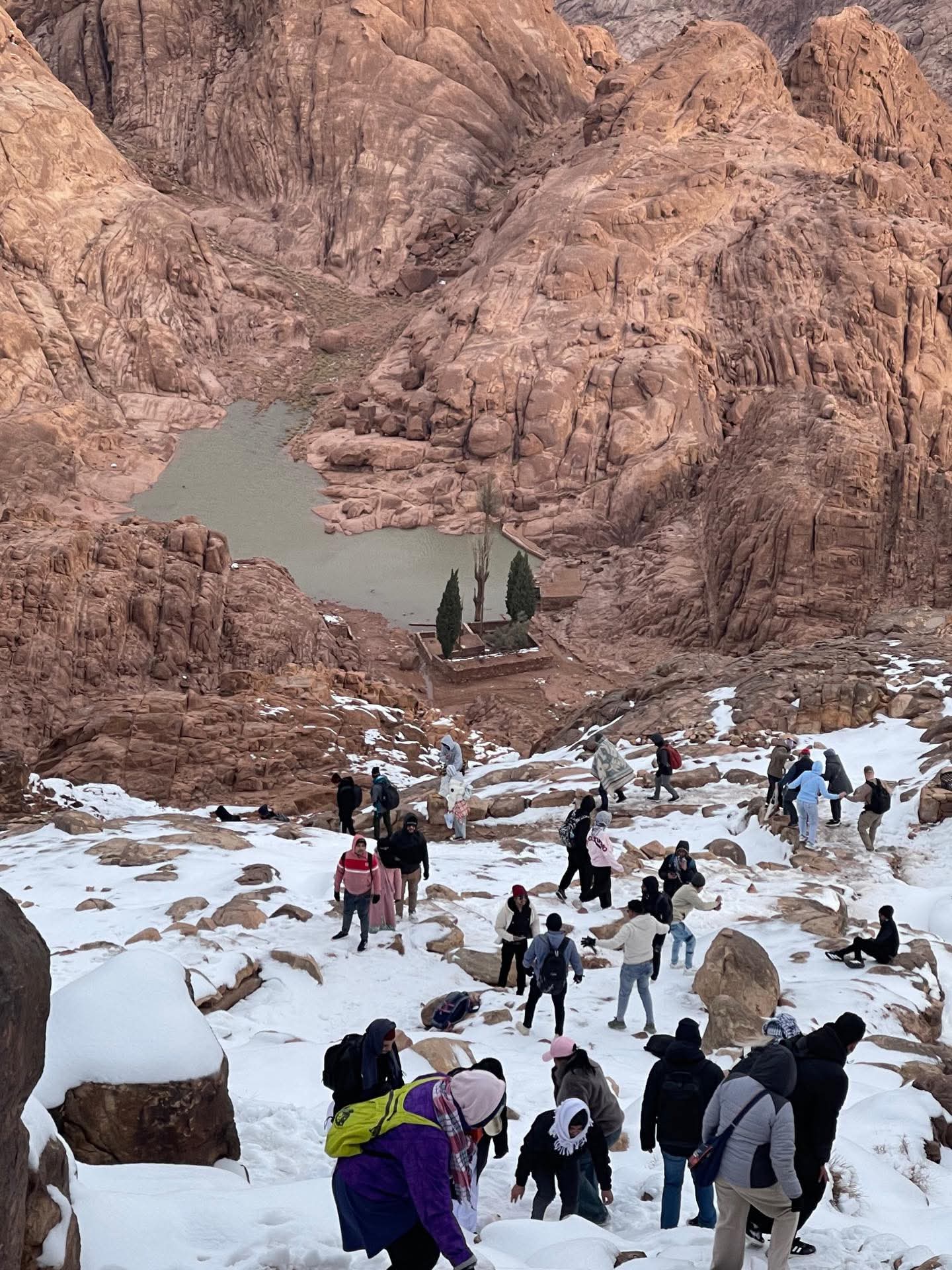 شهدت مدينة سانت كاترين أجواءً شتوية استثنائية، دفعت بدو المنطقة إلى تشبيهها بمدن أوروبا، بل وإطلاق لقب “موسكو مصر” عليها، في ظل الانخفاض الملحوظ في درجات الحرارة وتساقط الثلوج على قمم الجبال، في مشهد نادر يضفي سحرًا خاصًا على “أرض التجلي”.