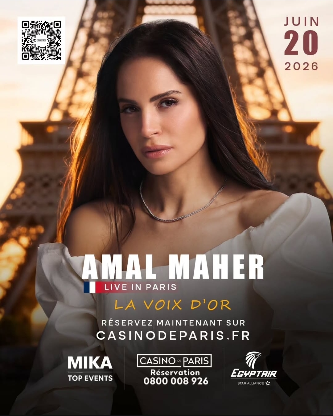 طرحت الفنانة امال ماهر بوستر احدث حفلاتها المنتظرة في باريس والذى من المقرر إقامته يوم 20 يوليو المقبل، على مسرح كازينو ضمن جولتها الغنائية في أوروبا.