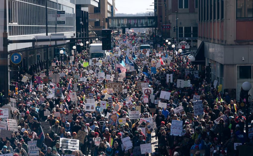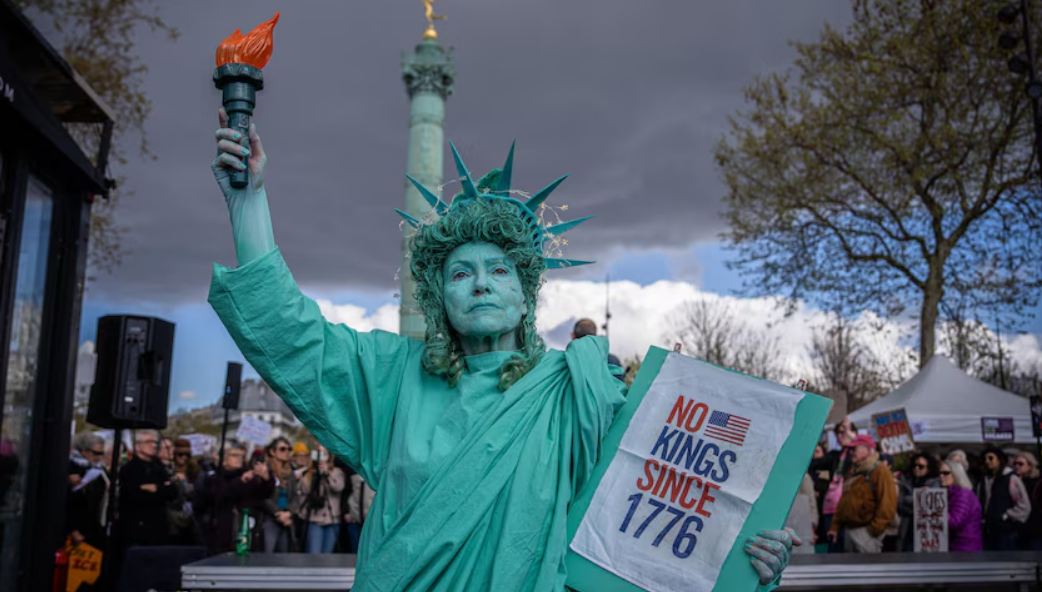 وخرج المتظاهرون المنددون بسياسات الرئيس الأمريكي إلى شوارع المدن في جميع أنحاء الولايات المتحدة وأوروبا ضمن النسخة الثالثة من مسيرات "لا للملوك".