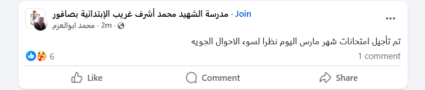 أعلنت الصفحات الرسمية لعدد من المدارس على فيس بوك ، تأجيل امتحانات شهر مارس التي كان مقرر عقدها اليوم نظرا لسوء الأحوال الجوية .