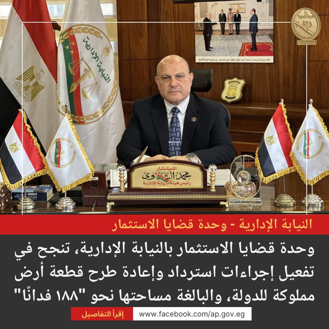 يأتي ذلك في إطار الجهود المتواصلة التي تبذلها النيابة الإدارية في صون المال العام، وترسيخ مبادئ الحوكمة وسيادة القانون، وتعزيز كفاءة إدارة الأصول المملوكة للدولة، بما يسهم في تهيئة مناخ استثماري جاذب ومستقر، اتساقًا مع توجهات الدولة نحو دعم الاستثمار، وتنفيذ مستهدفات الاستراتيجية الوطنية لمكافحة الفساد، ورؤية مصر ٢٠٣٠ للتنمية المستدامة، وبما يعزز ثقة المستثمرين ويكفل مبدأ تكافؤ الفرص.