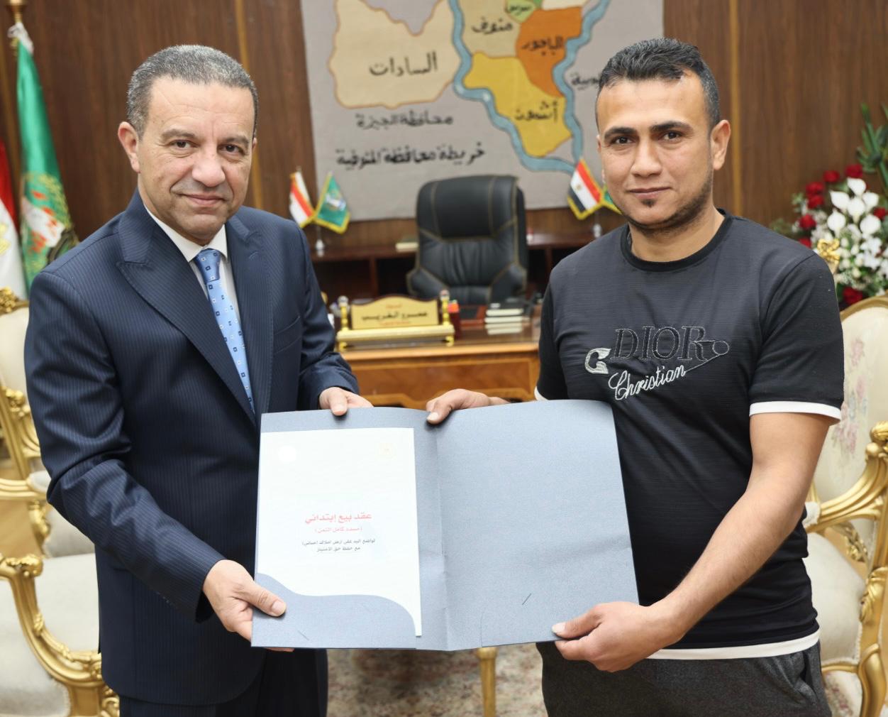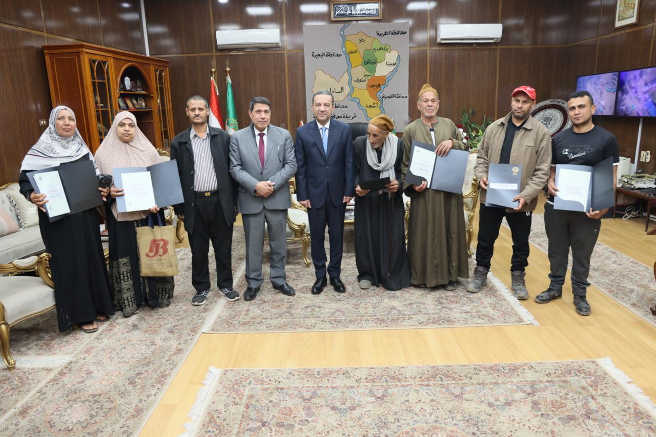 سلم اليوم اللواء عمرو الغريب محافظ المنوفية 6 عقود تقنين نهائية جديدة لعدد من المواطنين واضعي اليد بعد استيفائهم كامل الاشتراطات القانونية وموافقات الجهات المعنية وفقاً لأحكام القانون رقم 168 لسنة 2025، بحضور المستشار القانوني للمحافظة ،مدير عام إدارة حماية أملاك الدولة ، مدير منظومة التقنين الالكترونية بالديوان العام .