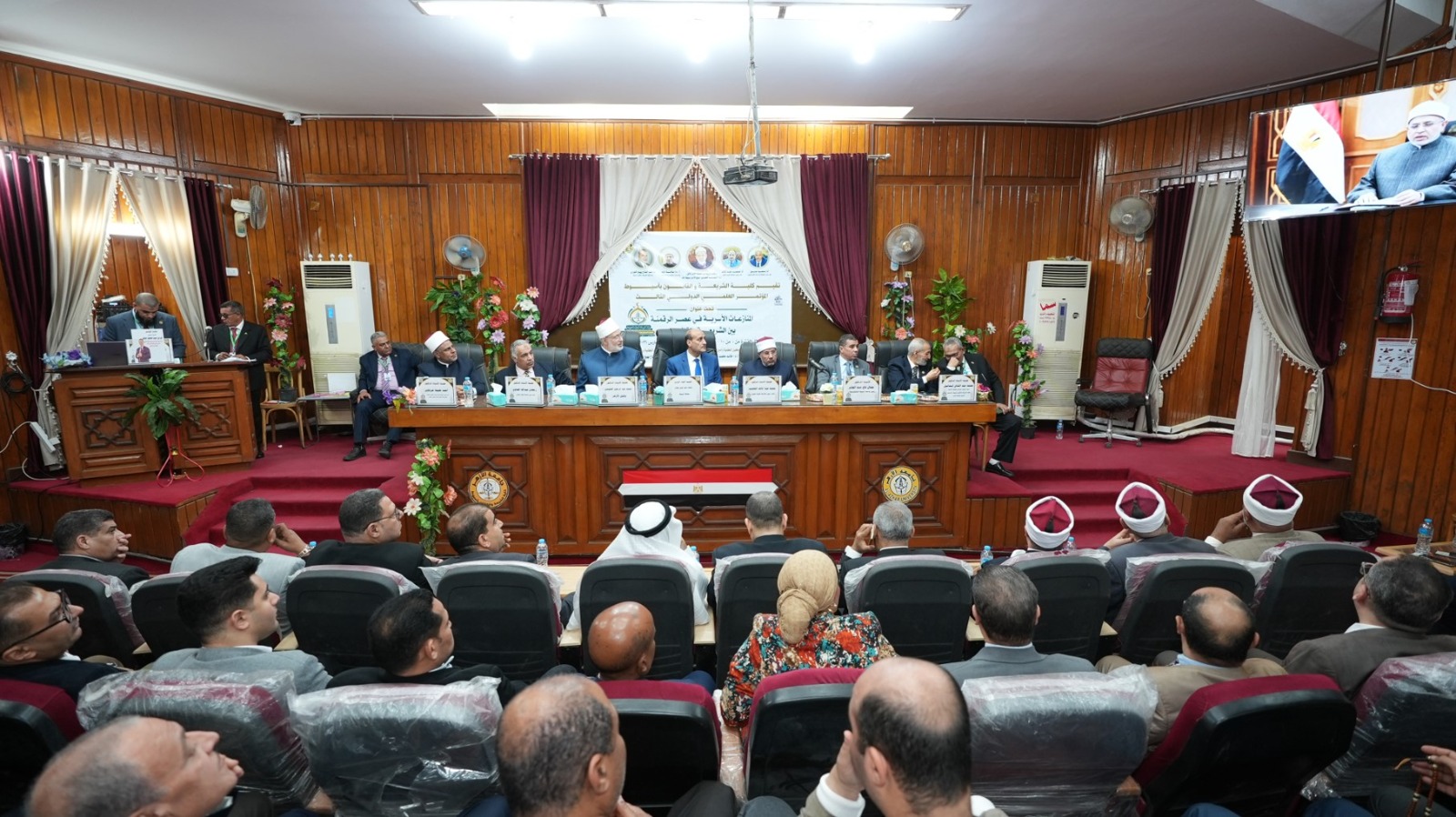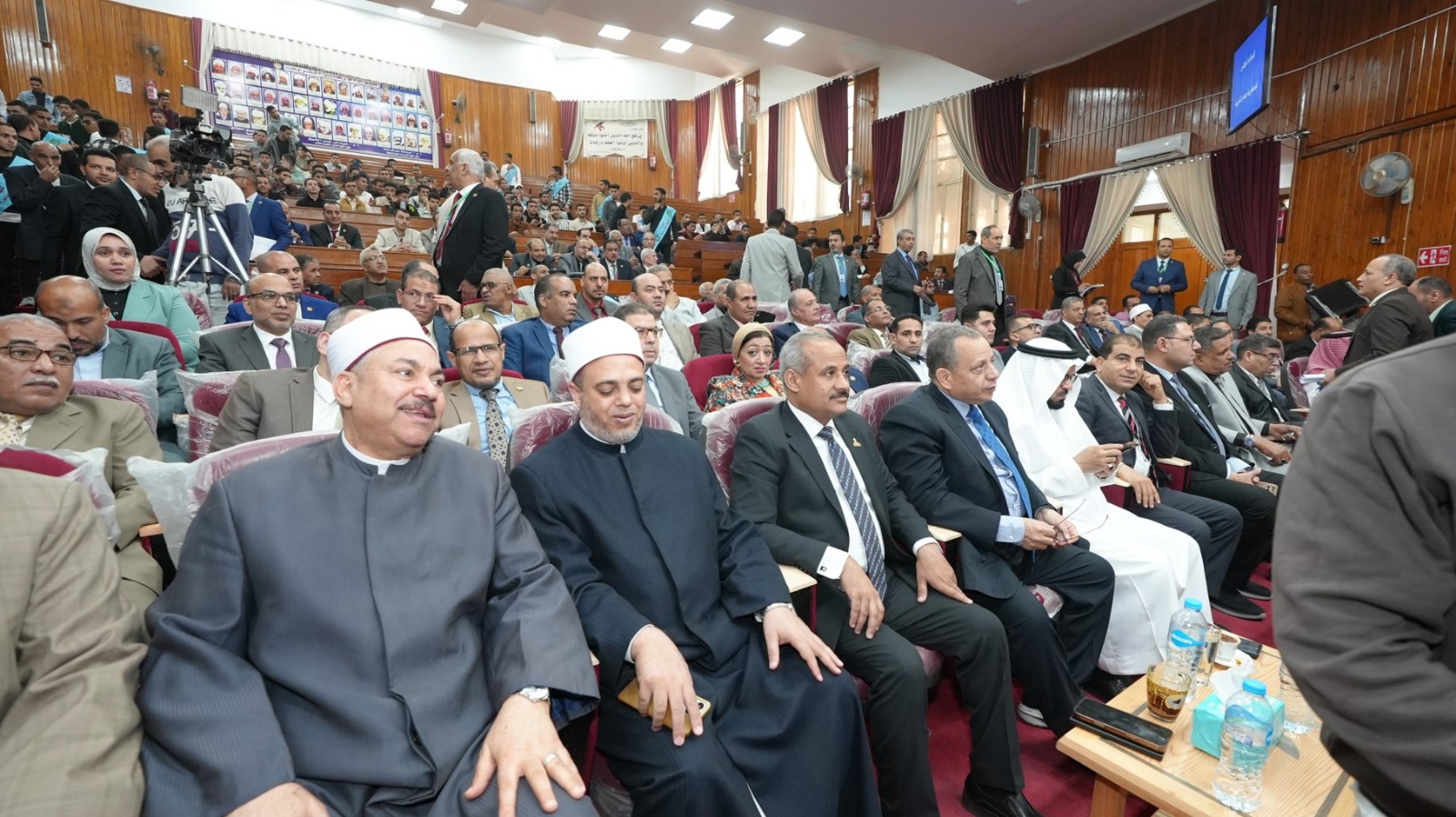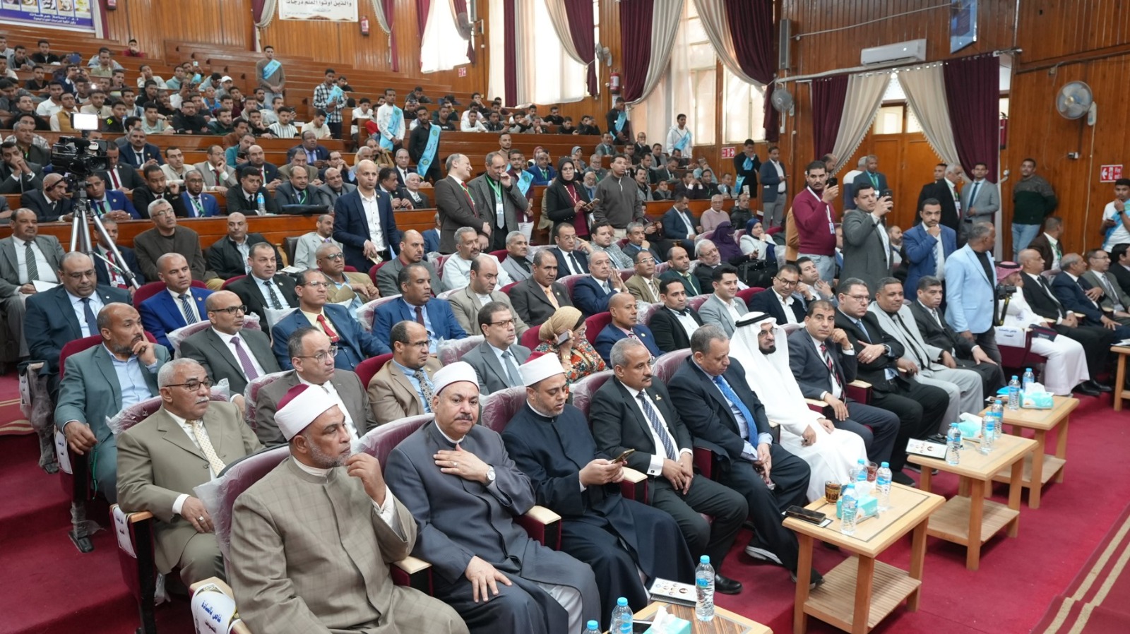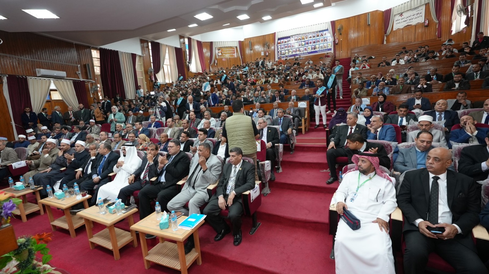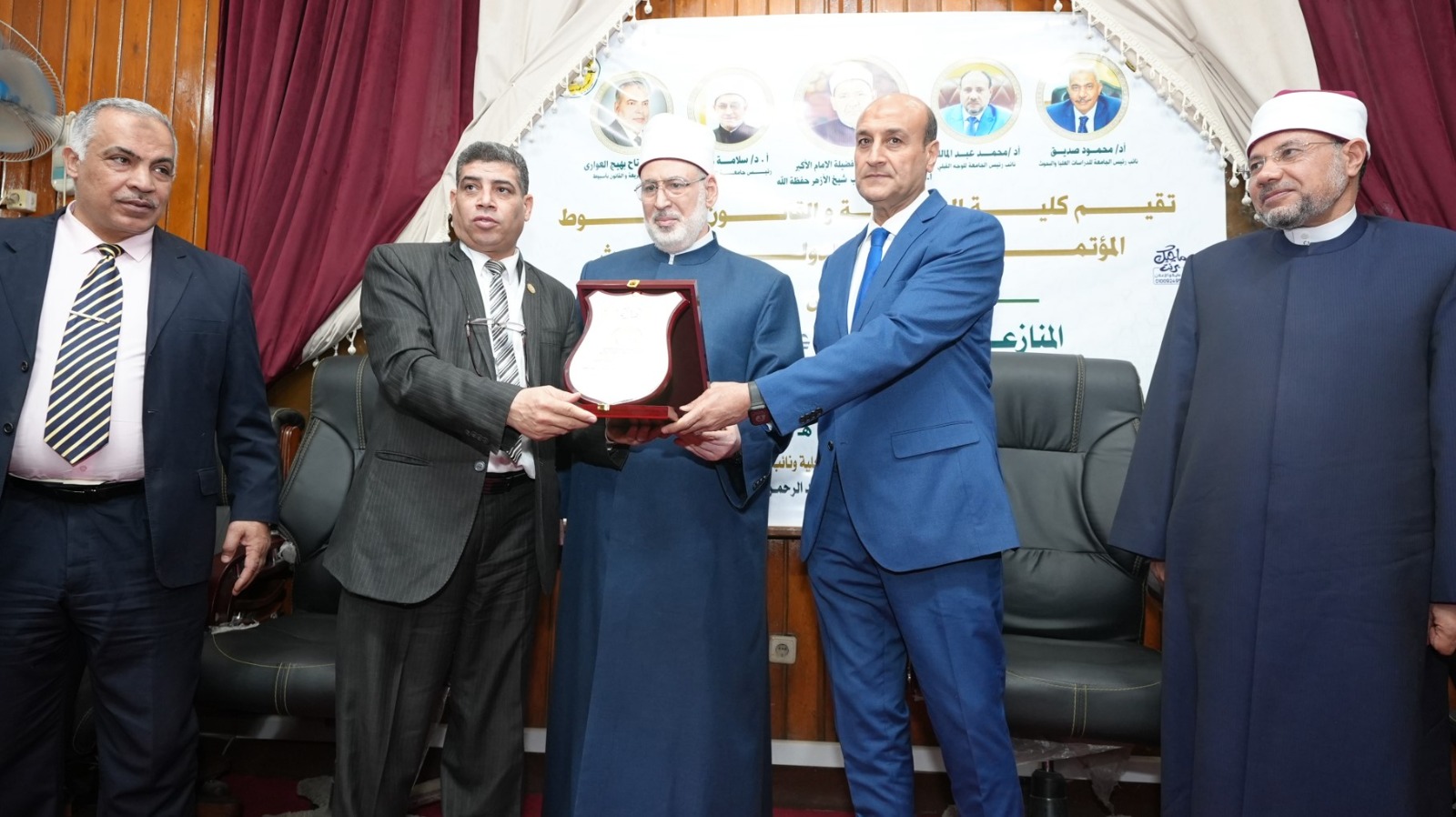 جاء ذلك بحضور عدد من قيادات جامعة الأزهر ونخبة من العلماء والمتخصصين، من بينهم الدكتور محمد عبد المالك نائب رئيس جامعة الأزهر للوجه القبلي، والدكتور رمضان الصاوي نائب رئيس جامعة الأزهر للوجه البحري، والدكتور جمال تاج عبد الجابر رئيس الجامعة التكنولوجية بأسيوط، والدكتور أحمد الشرقاوي وكيل قطاع المعاهد الأزهرية، والدكتور محمد عبدالشافي رئيس جامعة الأزهر الأسبق، والدكتور عبدالفتاح بهيج عميد كلية الشريعة والقانون، والدكتور محمد القرني عميد كلية الشريعة وأصول الدين بجامعة الملك الخالد بالمملكة العربية السعودية، والدكتور عيد على خليفة وكيل وزارة الأوقاف، والدكتور علي محمود رئيس منطقة أسيوط الأزهرية، وعدد من السادة عمداء ووكلاء كليات الفرع الجامعة وأعضاء هيئة التدريس والهيئة المعاونة والعاملين وحشد كبير من الطلاب.