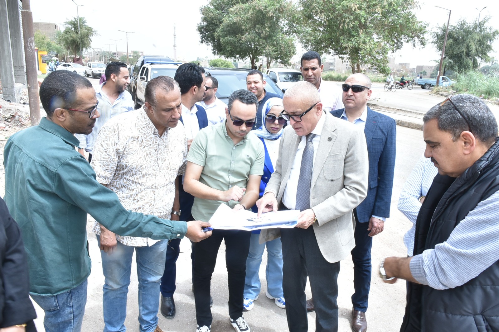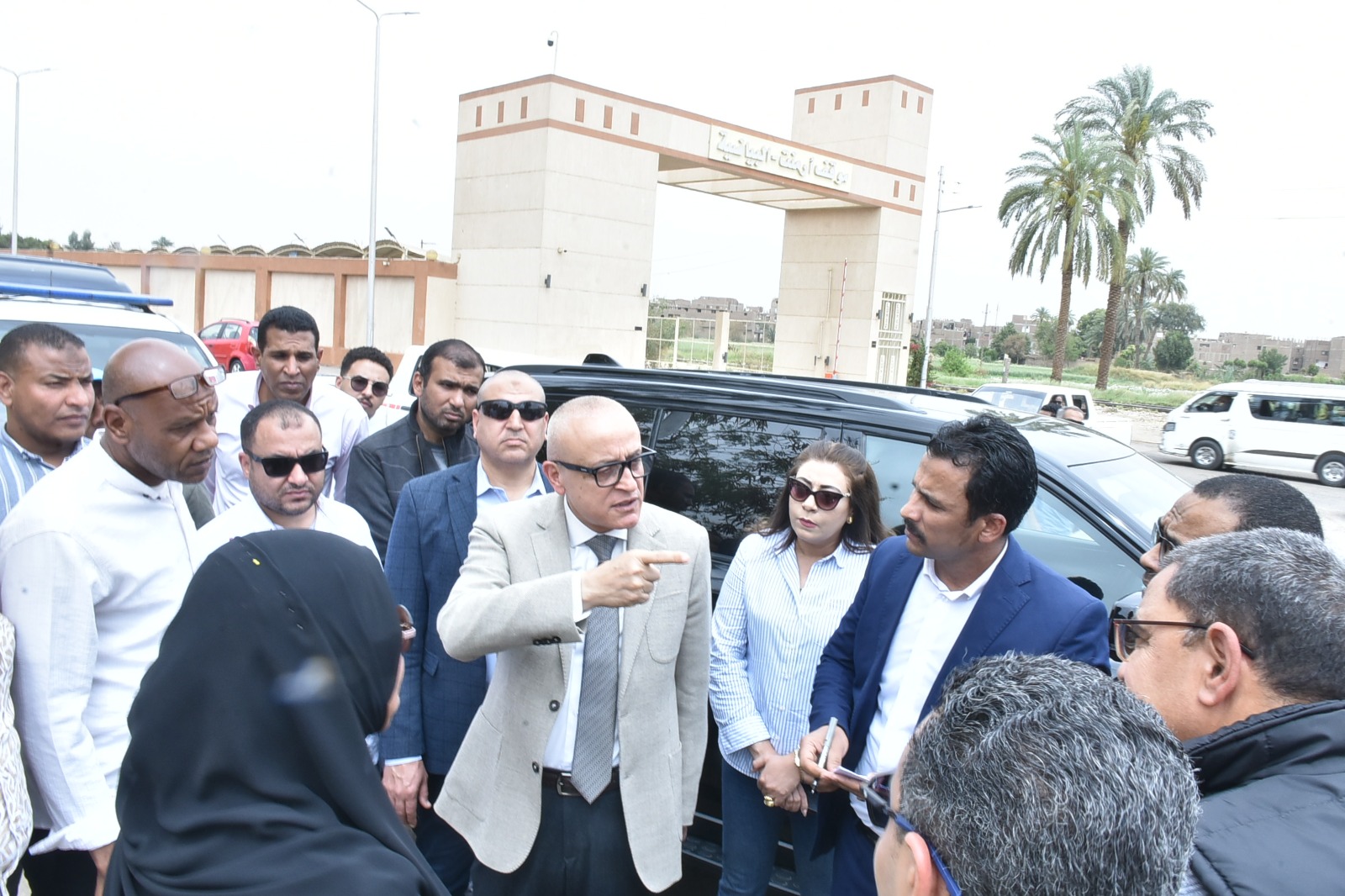 رافق محافظ الأقصر خلال الجولة اللواء مهندس أحمد عرفة، رئيس مجلس الإدارة والعضو المنتدب لشركة مياه الشرب والصرف الصحي، والمهندسة رقية حماد، رئيس الهيئة القومية لمياه الشرب والصرف الصحي، والمهندسة إلهام شيباني، مدير مديرية الطرق والنقل، وحاتم جابر سلامة سكرتير مدينة الأقصر، والمهندس ماجد جميل مدير الإدارة الهندسية بالمحافظة، والمهندسة ميري روحي مدير مشروعات الكهرباء، والمهندس عبد الله بكرى مدير التنفيذ بالهيئة القومية لمياه الشرب والصرف الصحي.