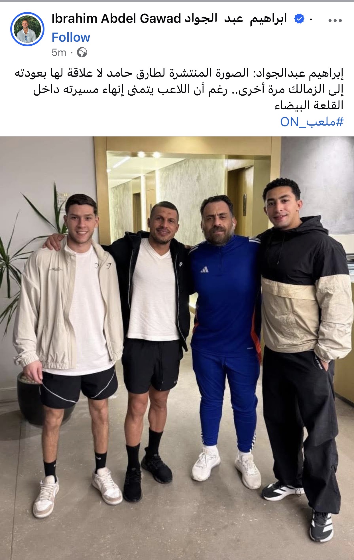 وأوضح عبد الجواد أن الصورة لا ترتبط بأي مفاوضات أو خطوات رسمية لعودة اللاعب، مؤكدًا أنها لا تعكس وجود اتفاق أو تحرك فعلي في هذا الاتجاه خلال الفترة الحالية.