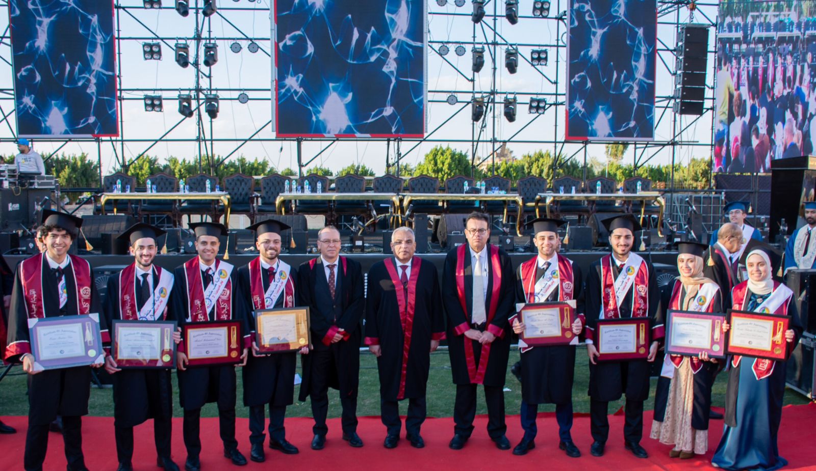 جاء ذلك بحضور الدكتور السيد العجوز نائب رئيس جامعة طنطا لشئون التعليم والطلاب، والدكتور محمد حنتيرة عميد الكلية ورئيس مجلس إدارة المستشفيات الجامعية، والدكتور محمد جابر وكيل كلية الطب لشئون التعليم والطلاب، والدكتور لؤي الأحول وكيل الكلية لشئون خدمة المجتمع وتنمية البيئة، والدكتور حسن التطاوي المدير التنفيذي للمستشفيات الجامعية، والدكتور بهاء توفيق نقيب أطباء الغربية، ولفيف من أساتذة كلية الطب والخريجين وأولياء أمورهم، وذلك بإستاد جامعة طنطا بمجمع الكليات سبرباى .