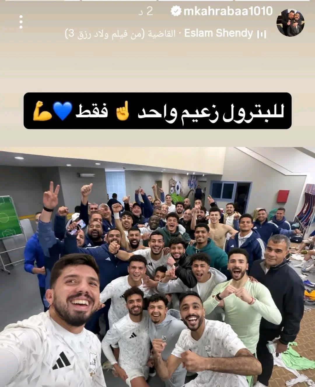 نشر اللاعب محمود عبدالمنعم كهربا عبر حسابه الرسمي على إنستجرام ستوري محتفل بعد فوز فريقه على بتروجت برباعية نظيفة، معلقًا: “البترول زعيم واحد"