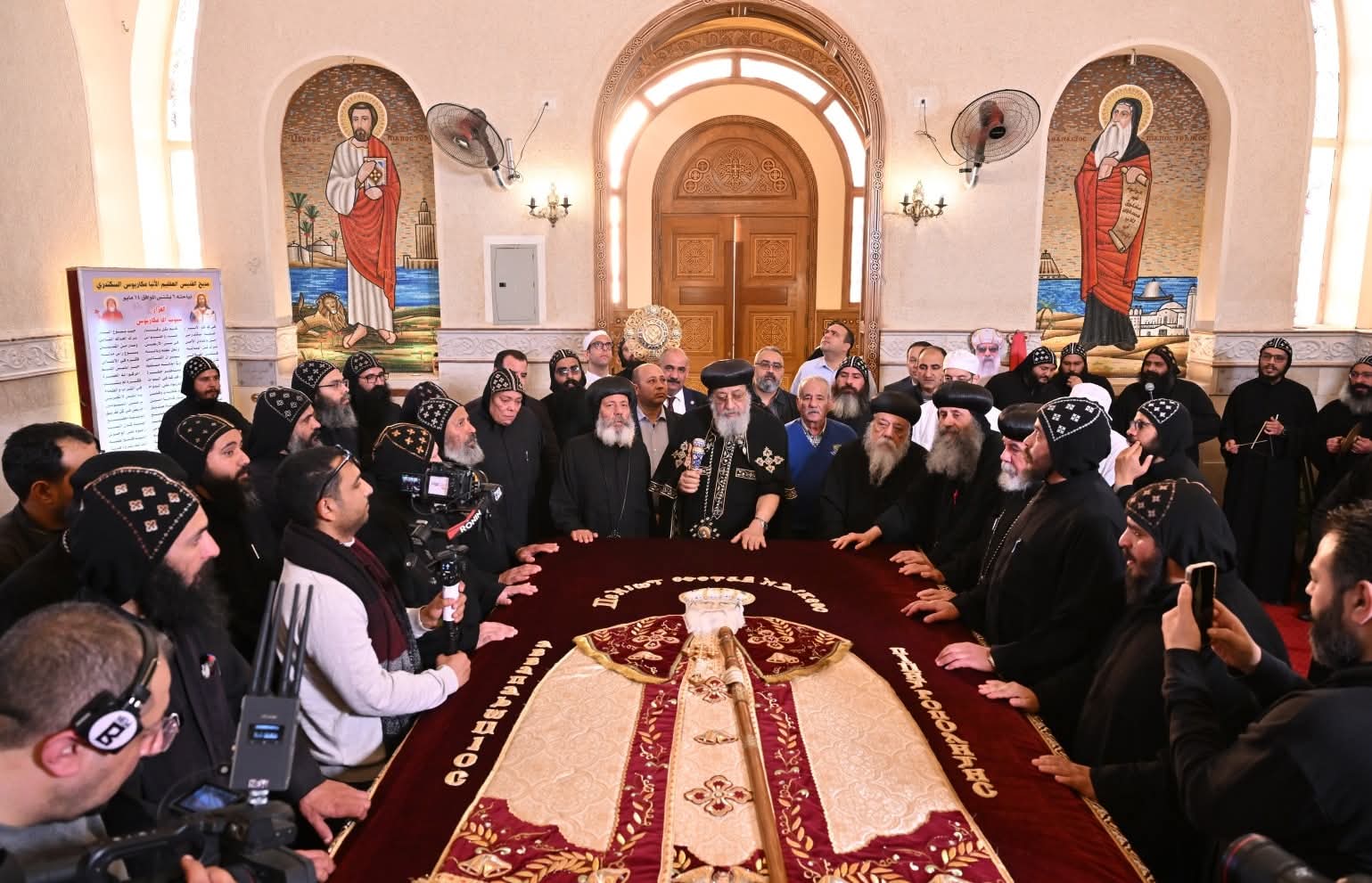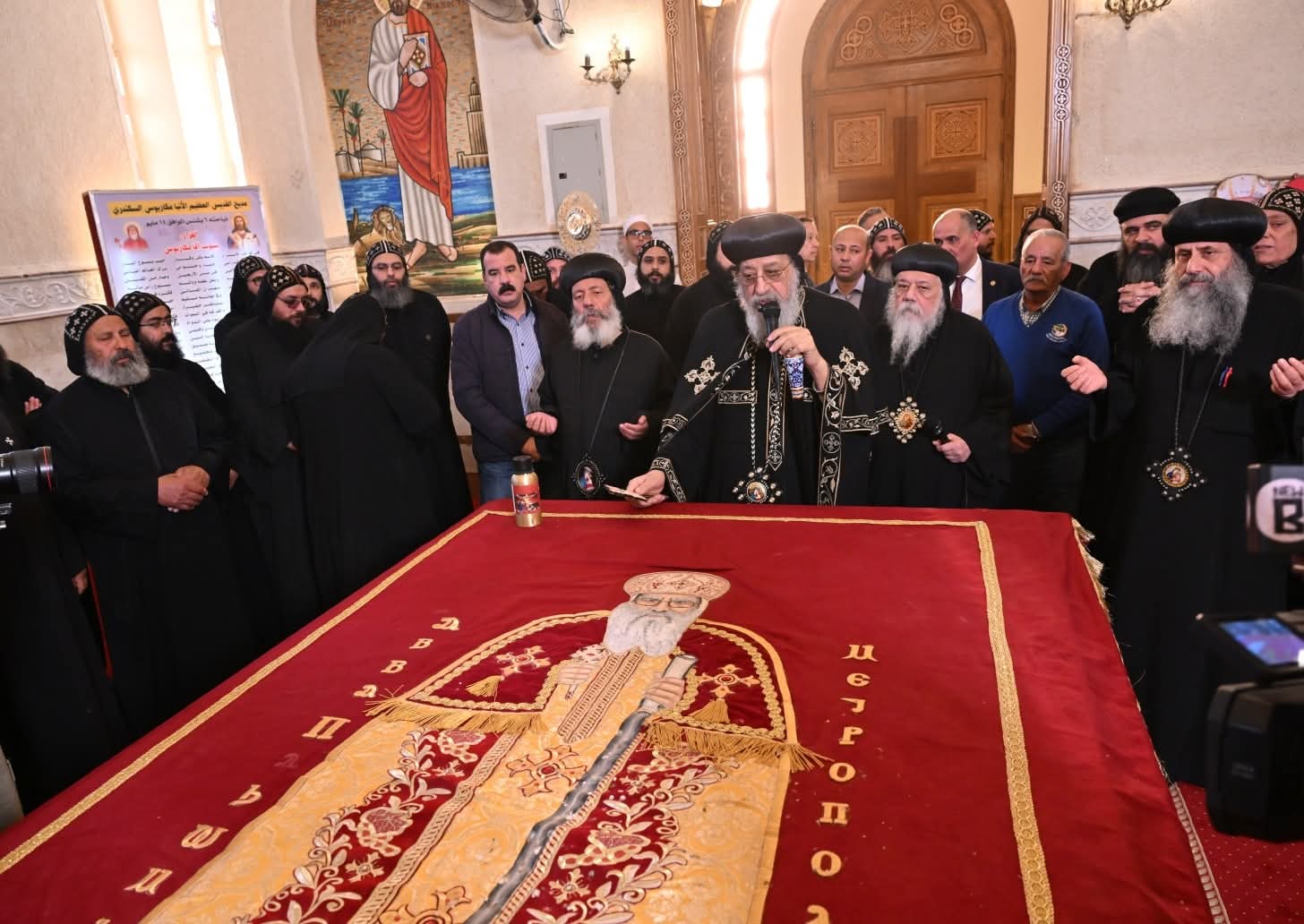 ووضع قداسة البابا الأطياب والحنوط على المقبرة بمشاركة ستة من أحبار الكنيسة إلى جانب نيافة الأنبا باخوميوس أسقف ورئيس الدير ذاته.