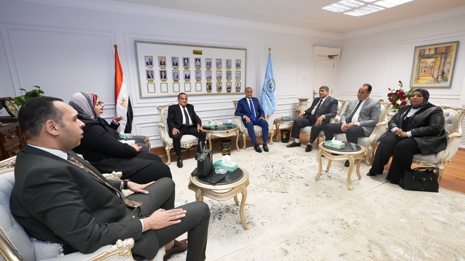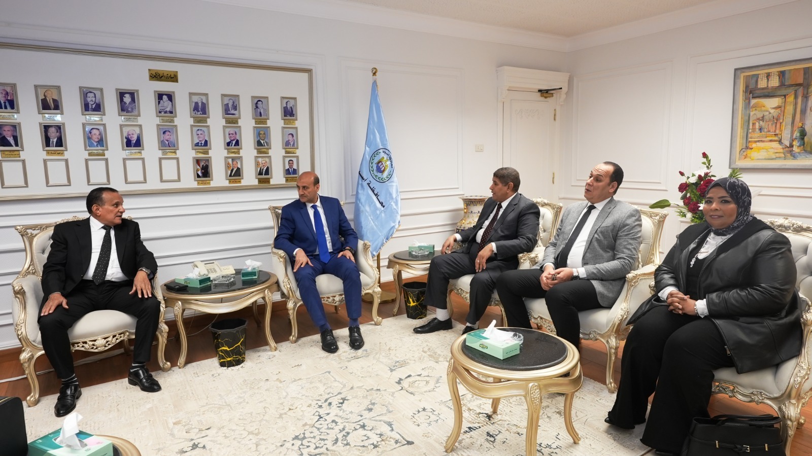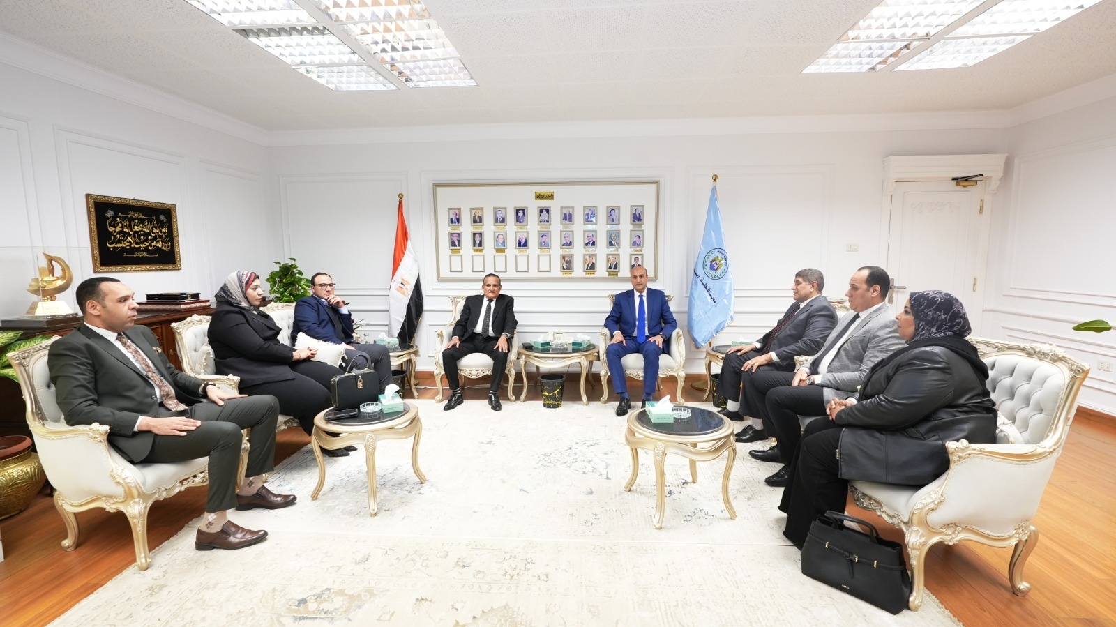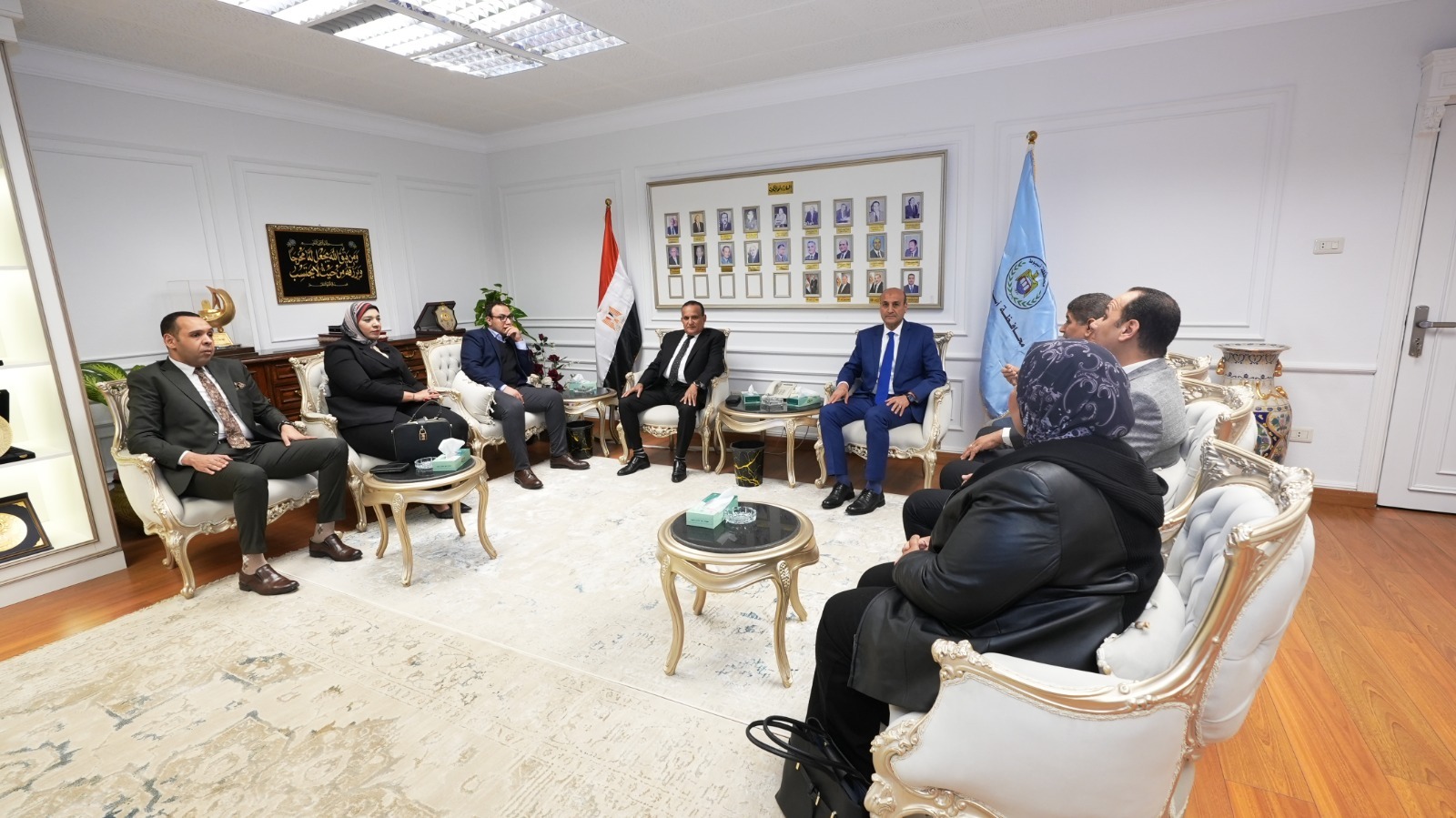 استقبل اللواء محمد علوان، محافظ أسيوط، بمكتبه بديوان عام المحافظة، وفدًا من نادي هيئة النيابة الإدارية، برئاسة المستشار عبد الوهاب نجاتي نائب رئيس هيئة النيابة الإدارية ورئيس مجلس إدارة النادي ومدير المكتب الفني بأسيوط، وذلك لتقديم التهنئة له بمناسبة توليه المسئولية محافظًا للإقليم. وضم الوفد كلًا من المستشار ياسر لطفي درويش نائب رئيس هيئة النيابة الإدارية وسكرتير عام النادي، والمستشار عمرو مصطفى سلطان الوكيل العام الأول نائب مدير نيابة أسيوط القسم الأول وأمين صندوق النادي، والمستشارة شيماء حسن أبو المعالي الوكيل العام الأول وعضو مجلس إدارة النادي، والمستشار محمود أحمد عبد الغفار الوكيل العام بنيابة أسيوط القسم الثالث وعضو مجلس إدارة النادي، والمستشارة هالة متولي محمد الوكيل العام لنيابة أسيوط القسم الثاني وعضو مجلس إدارة النادي. وخلال اللقاء، أعرب محافظ أسيوط عن خالص شكره وتقديره لهذه الزيارة الطيبة، مؤكدًا اعتزازه بالدور المهم الذي تقوم به هيئة النيابة الإدارية في ترسيخ مبادئ العدالة والنزاهة ومكافحة الفساد، بما يسهم في دعم منظومة العمل الحكومي وتحقيق الصالح العام. وأشار المحافظ إلى أهمية تكاتف كافة الجهات والمؤسسات، والعمل بروح الفريق الواحد، لدفع عجلة التنمية وتحقيق رؤية الدولة نحو تحسين مستوى الخدمات المقدمة للمواطنين في مختلف القطاعات.