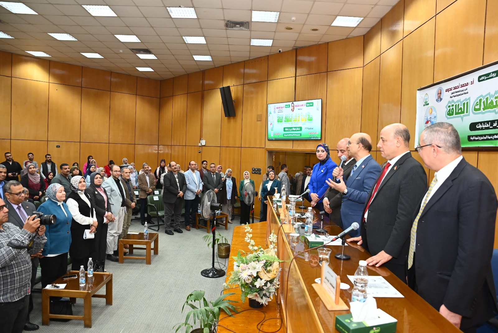 كما ألقى نائب رئيس الجامعة لشئون خدمة المجتمع وتنمية البيئة محاضرة بعنوان: «سياسات الطاقة في مصر.. الترشيد ومستقبل التنمية»، تناول خلالها أهمية إعادة النظر في أنماط استهلاك الطاقة، وتقليل الاستخدامات غير الضرورية، مع تحقيق توزيع أكثر كفاءة للموارد بما يسهم في تخفيف الأعباء وتعظيم الاستفادة منها.