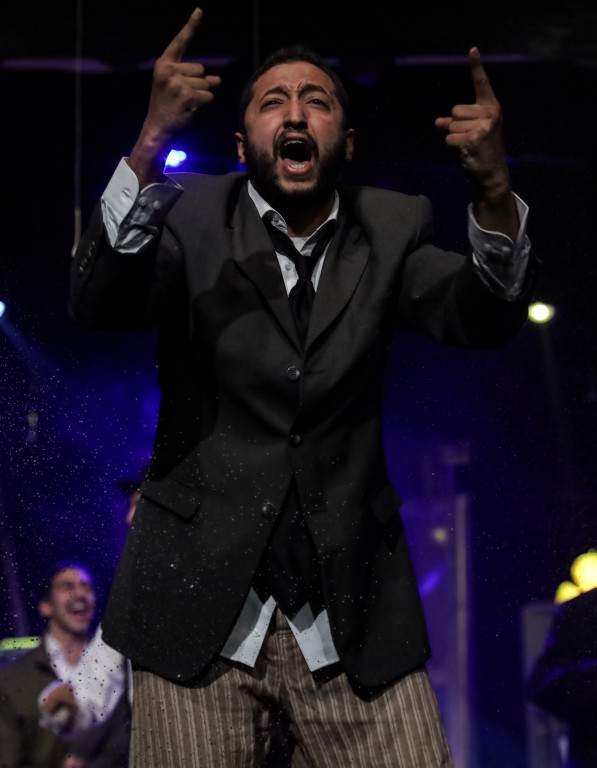 العرض بطولة: باسم داوود، حسام سيد، عبد الرحمن الزيدي، سهيلة الانور، يوسف مراد، امير الصم، تأليف داريو فو، من إعداد وإخراج باسم داوود.