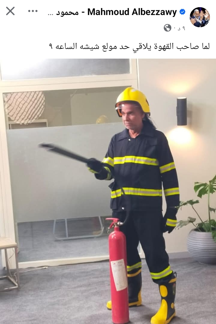 وشارك البزاوي صورة عبر فيسبوك، وعلق عليها: “لما صاحب القهوة يلاقي حد مولع شيشه الساعه ٩”.