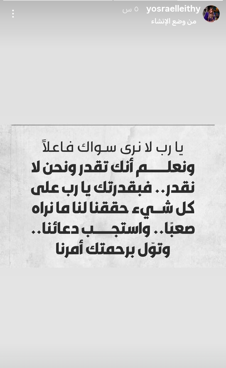 ونشرت يسرا الليثي، زوجة أحمد حسام ميدو، تعليقًا مؤثرًا عبر حسابها الرسمي على "إنستجرام"، عبّرت فيه عن حالتها النفسية الصعبة بعد قرار حبس نجلها، حيث كتبت:"يا رب لا نرى سواك فاعلًا ونعلم أنك تقدر ونحن لا نقدر.. فبقدرتك يا رب على كل شيء، حقق لنا ما نراه صعبًا.. واستجب دعاءنا.. وتولَّ برحمتك أمرنا"