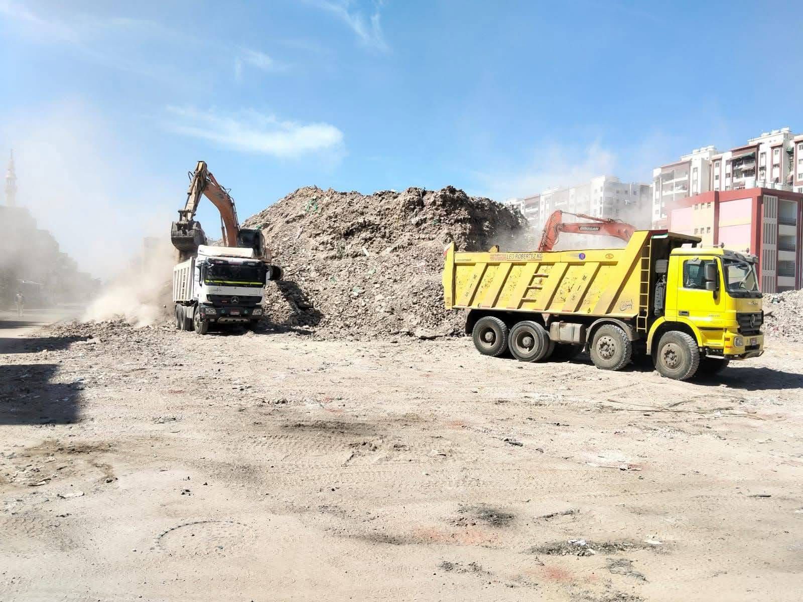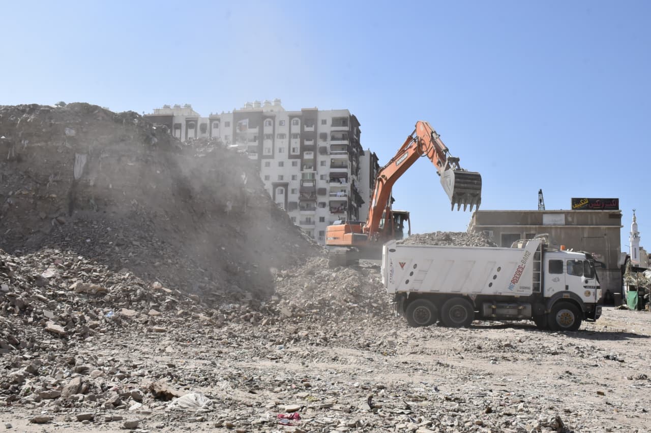 وشهدت الأعمال انتشارًا مكثفًا للمعدات الثقيلة وسيارات النقل، حيث تم الدفع بعدد كبير من اللوادر وسيارات نقل المخلفات، لرفع التراكمات الضخمة من مخلفات البناء والرتش التي تراكمت على مدار فترات طويلة، وذلك في إطار خطة متكاملة تستهدف القضاء على هذه الظاهرة نهائيًا وإعادة الانضباط للشكل الحضاري.