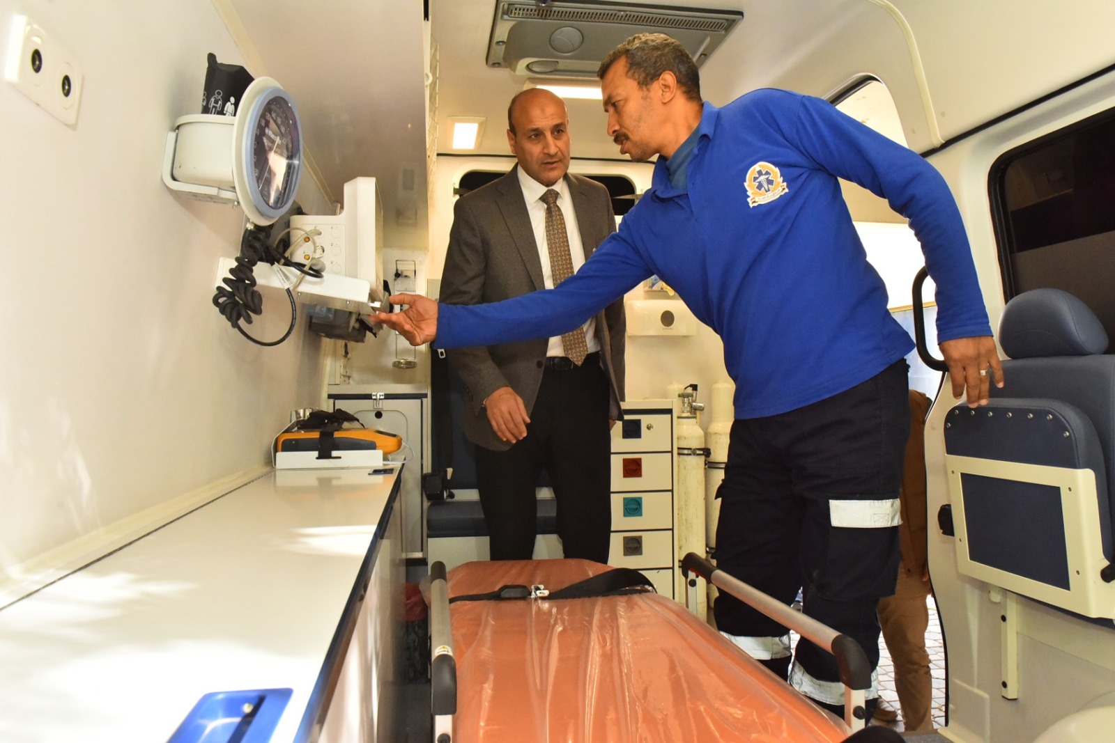 وخلال الجولة، أجرى المحافظ حوارًا مباشرًا مع أطقم المسعفين للتعرف على مستوى جاهزيتهم ومدى تلقيهم للتدريب اللازم، مشيدًا بما يبذلونه من جهود متواصلة في إنقاذ المرضى والتعامل مع الحالات الحرجة، مؤكدًا أن رجال الإسعاف يمثلون خط الدفاع الأول في منظومة الرعاية الصحية، ويواصلون عملهم على مدار الساعة.