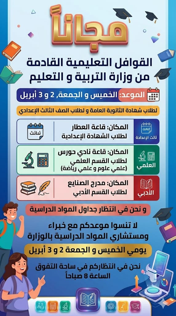 وأشار اللواء محمد علوان إلى أن القوافل تضم نخبة من كبار معلمي القنوات التعليمية المتخصصة، الذين تم ترشيحهم من قبل وزارتي التربية والتعليم والشباب والرياضة، بما يضمن تقديم محتوى تعليمي متميز يسهم في تدريب الطلاب على المناهج الدراسية وأحدث نماذج الامتحانات، ورفع مستوى التحصيل العلمي لديهم.
