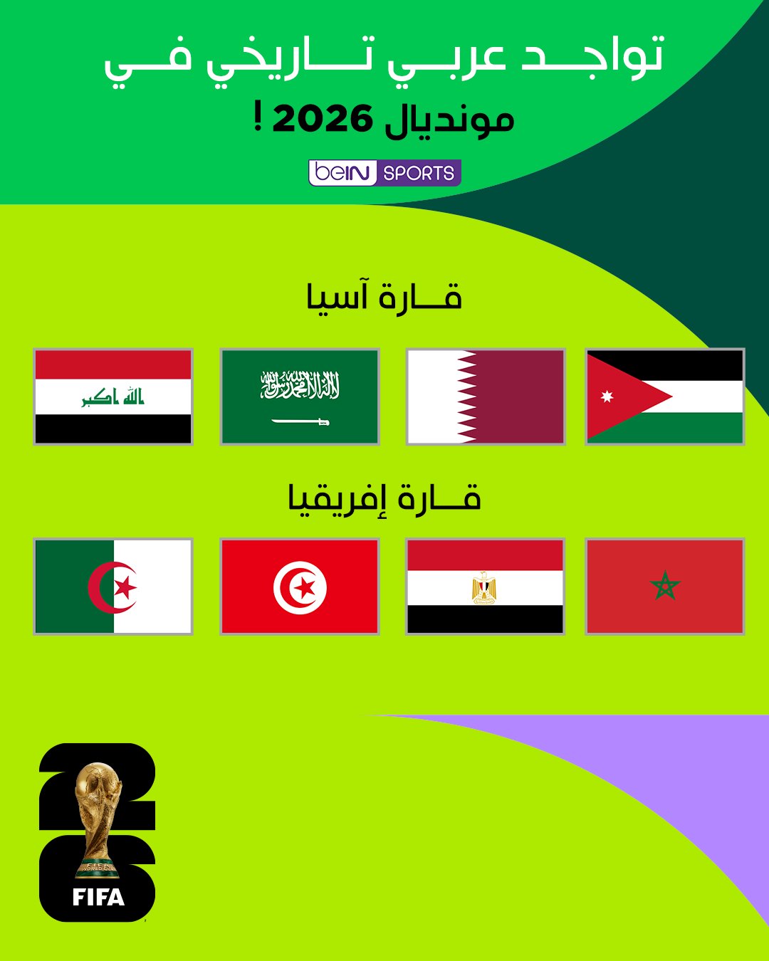 وبذلك، تأهلت ثمانية منتخبات عربية إلى نهائيات كأس العالم 2026، لتسجل مشاركة تاريخية للكرة العربية في النسخة المقبلة التي ستقام في الولايات المتحدة وكندا والمكسيك.