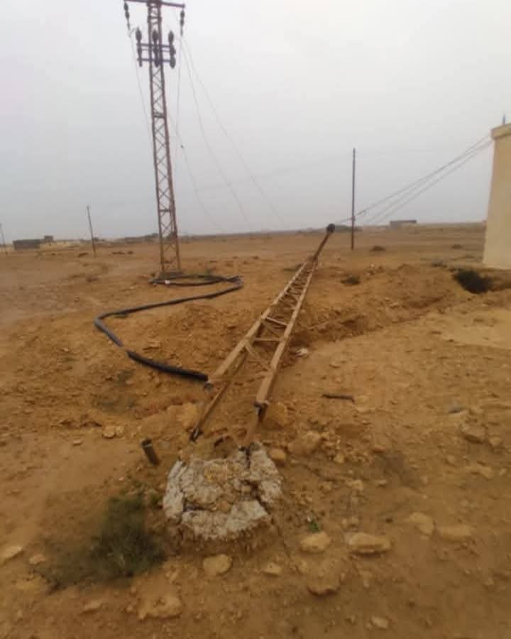 شهد طريق أبو ميلاد بمدينة سيدي براني بمحافظة مطروح، منذ قليل، سقوط 6 أبراج كهرباء جهد متوسط (22 ألف فولت)، نتيجة سوء الأحوال الجوية والرياح الشديدة التي تضرب المنطقة.