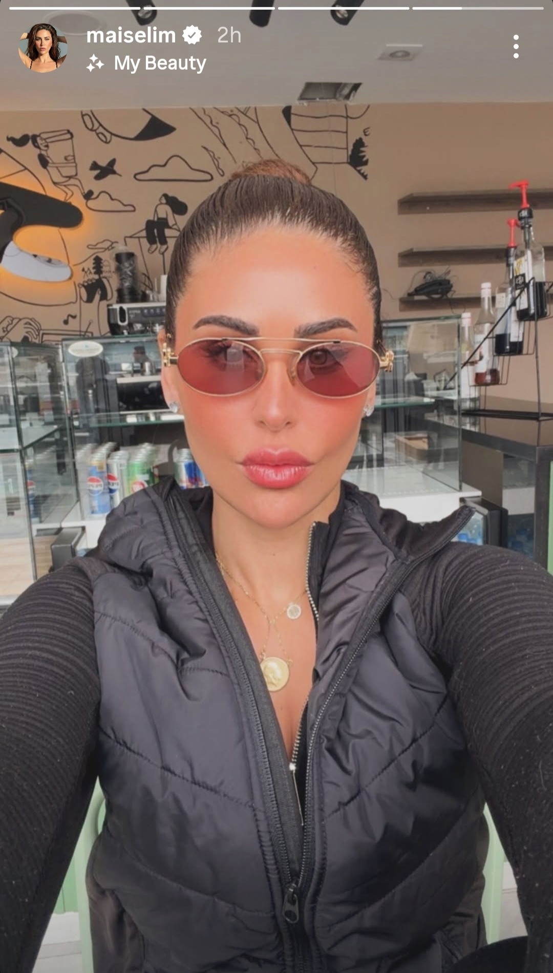 وظهرت مي سليم، بإطلالة شتوية أنيقة ،مرتدية جاكيت باللون الاسود، ليكشف عن جمالها و أناقتها .
