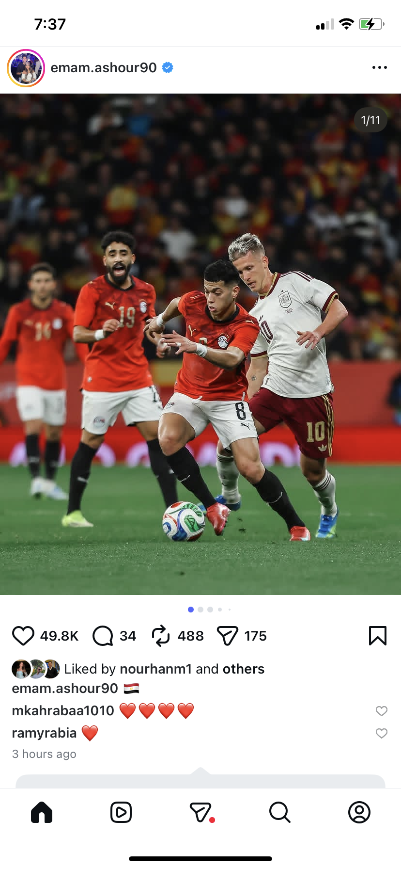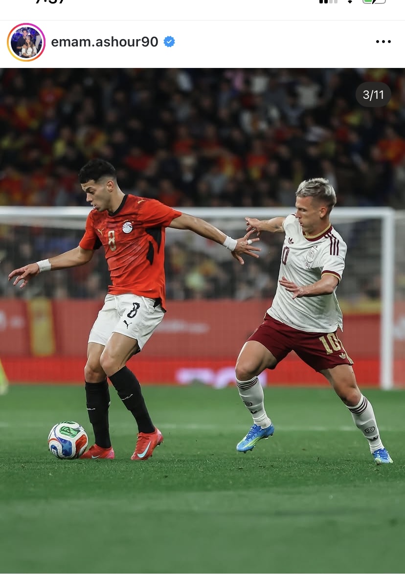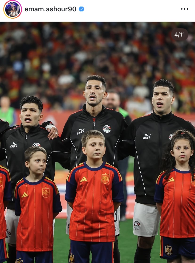 شارك إمام عاشور نجم النادي الأهلي ومنتخب مصر صورا عبر مواقع التواصل الإجتماعي انستجرام بعد تألقه في مباراة كأس العالم الودية مع منتخب إسبانيا واكتفي بوضع علم مصر .