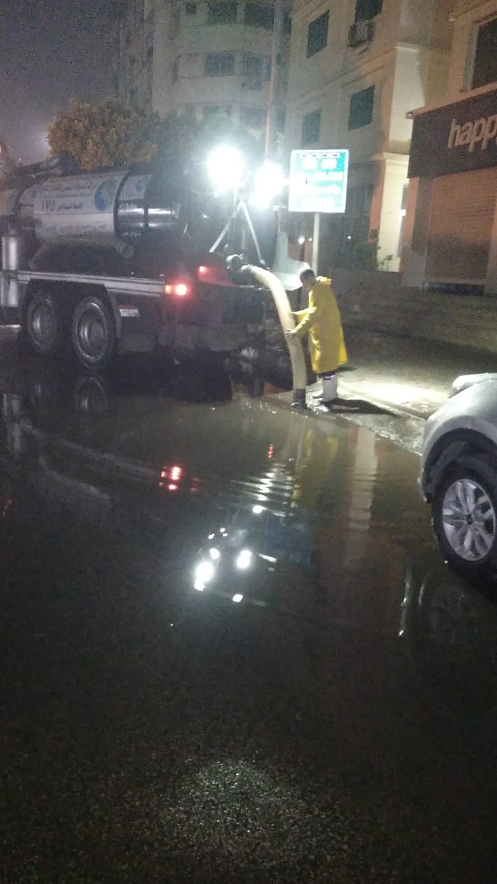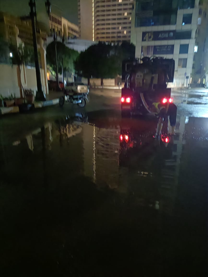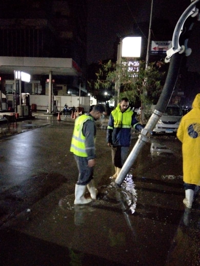 وأكد حسن استمرار انتشار المعدات وسيارات الشفط وفرق الطوارئ بكافة المناطق، للتعامل الفوري مع تجمعات المياه، بما يضمن تحقيق السيولة المرورية صباحاً