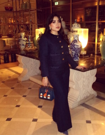 تألقت بوسي في الصور بإطلالة كشفت عن ذوقها الأنيق، حيث ارتدت بنطلون باللون الكحلي مع بليزر قصير بنفس اللون الذي لا يحمل أي تطريزات.